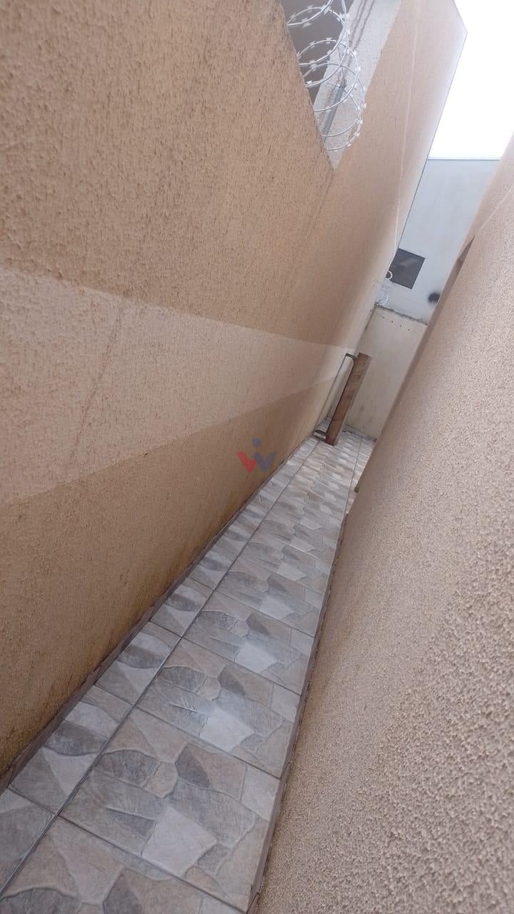 Na área externa possui um quintal na frente, com acesso lateral para os fundos da casa, onde ficam a lavanderia e a churrasqueira.