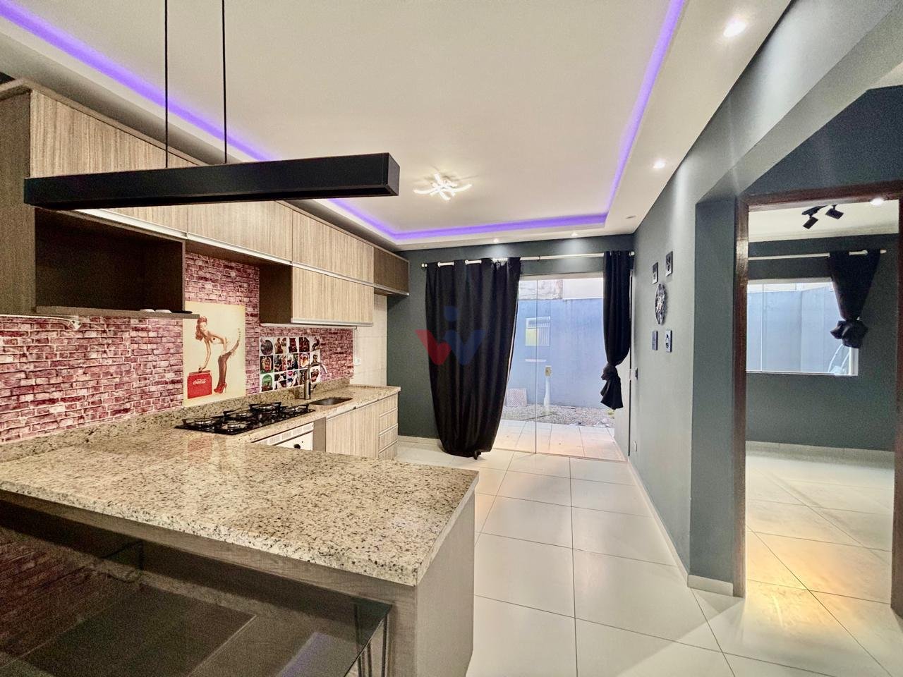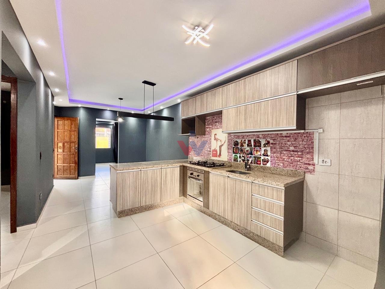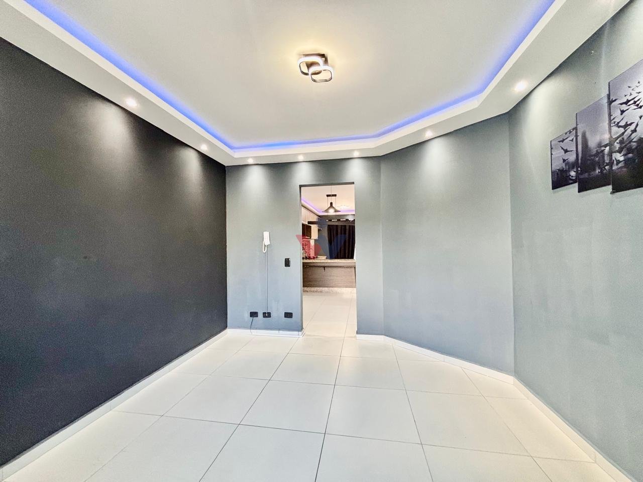 Sistema de iluminação em LED na sala e cozinha.