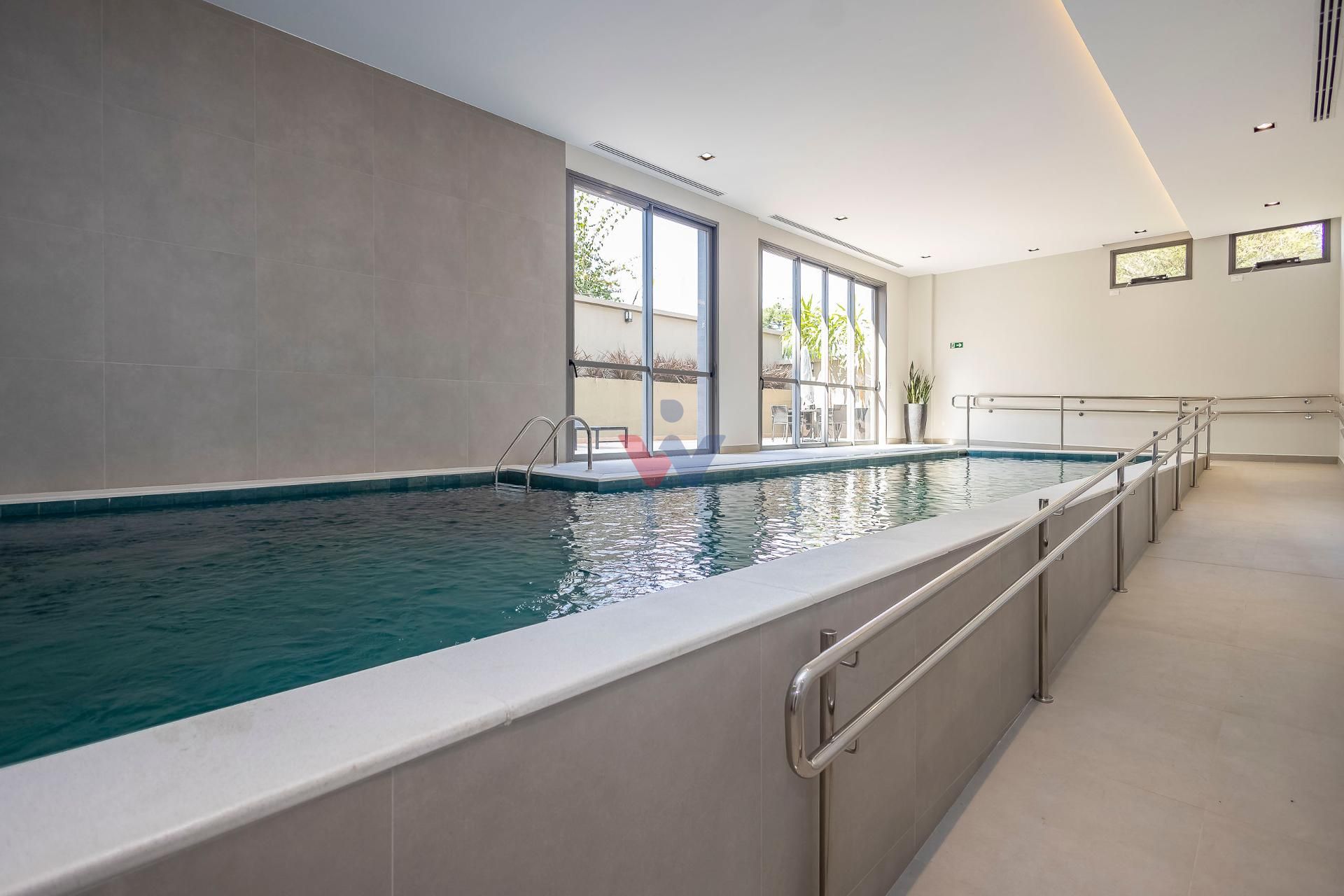 Lazer completo: Piscina aquecida e coberta, academia moderna, salão de festas com lounge externo e lareira, espaço gourmet, brinquedoteca e área pet.