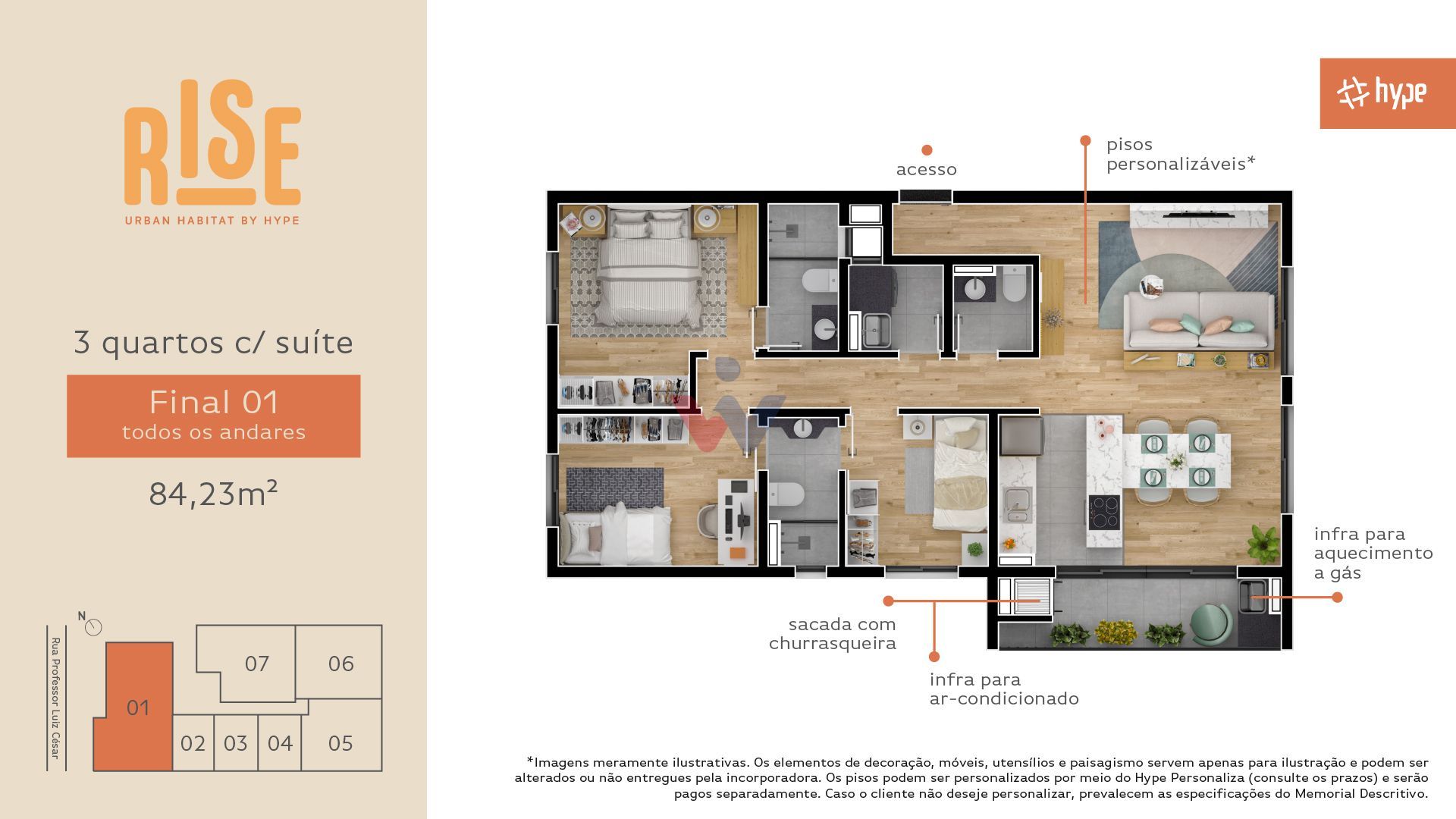 Esta descrição refere-se à unidade de 3 quartos com 3 suítes, que conta com 84,23 m² privativos o espaço ideal para viver momentos inesquecíveis com quem você ama.