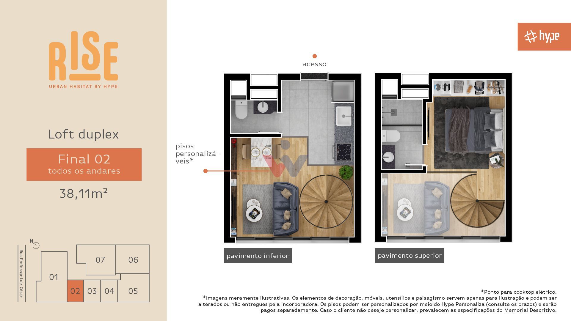Composto por uma única torre de 6 pavimentos e apenas 30 unidades, o Rise Urban Habitat é sinônimo de exclusividade. São oito tipologias de plantas cuidadosamente projetadas para atender diferentes estilos de vida: studios, lofts duplex, apartamentos de 1 quarto, e opções de 2 e 3 quartos com suíte. As metragens variam de 28,75 m² a 84,23 m² privativos, oferecendo desde layouts compactos e funcionais até espaços amplos e sofisticados.