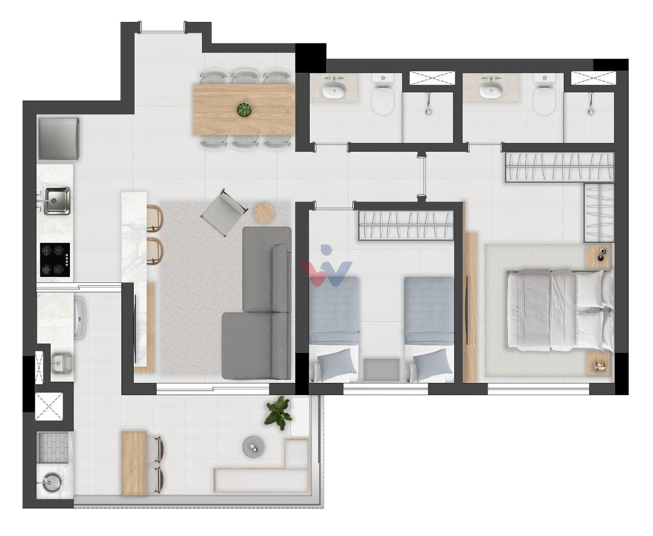 2 a 3 dormitórios, com opções de 1 a 3 suítes