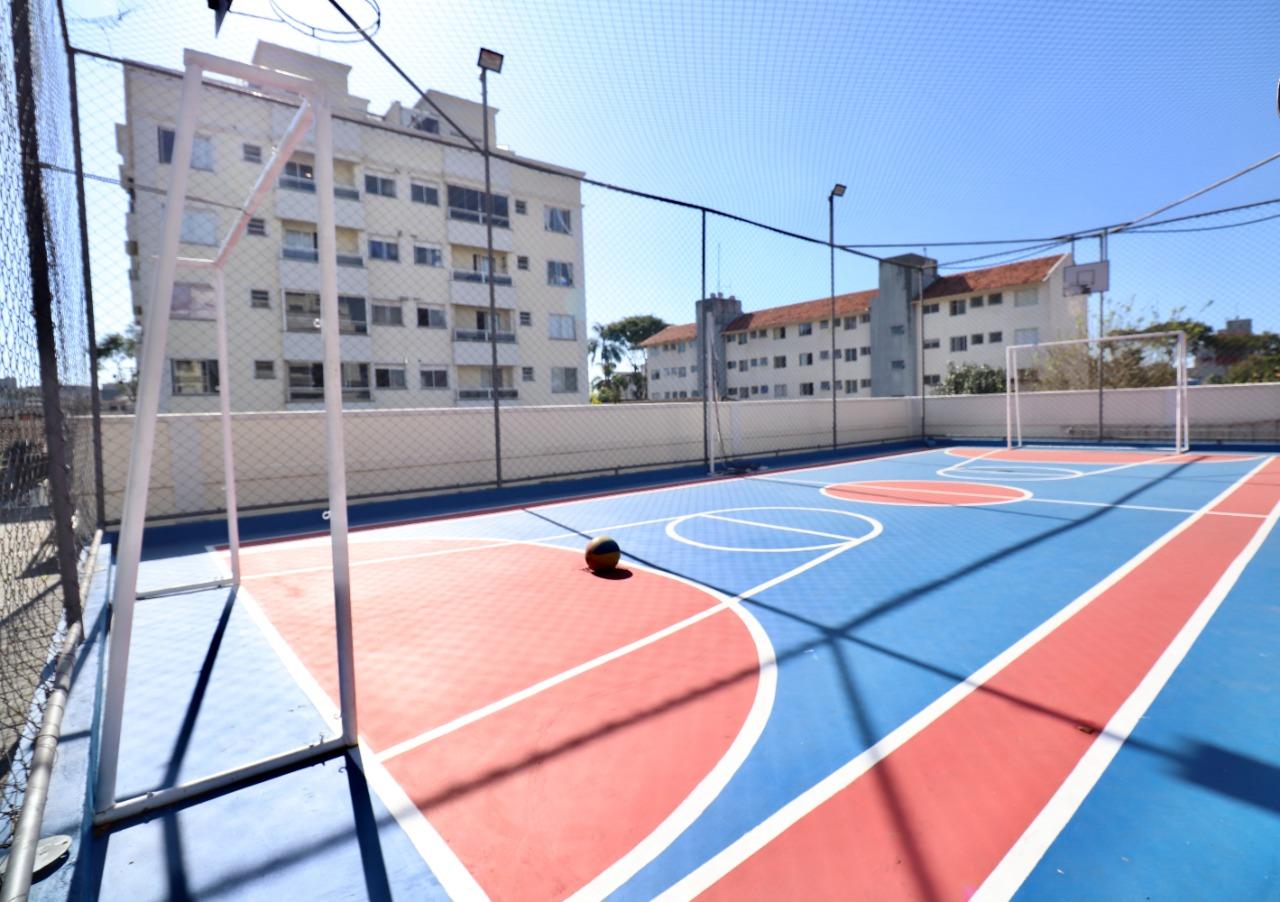 Condominio oferece área de lazer completa com quadra, parquinho e salão de festas.