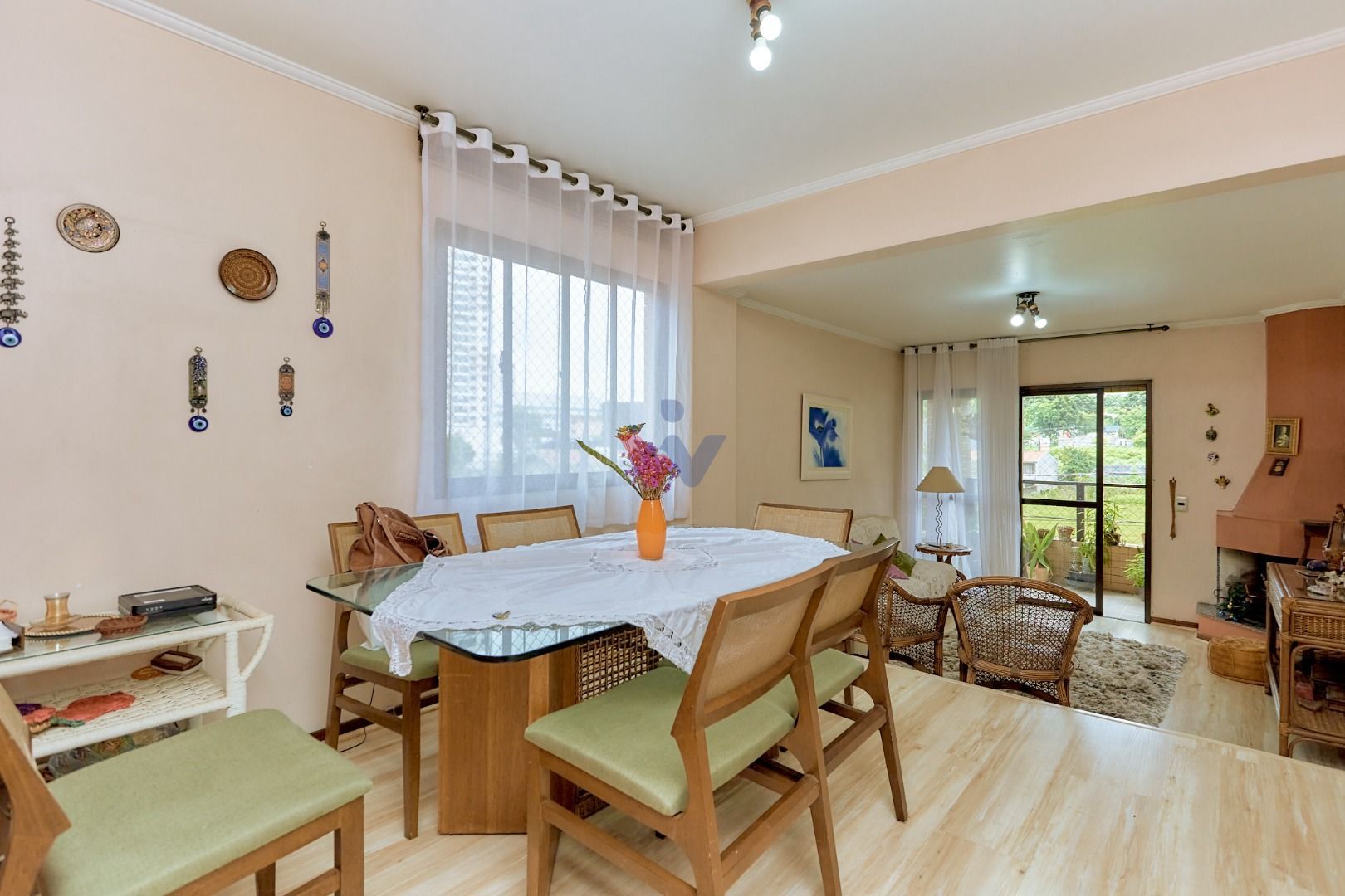 Ao adentrar, você é recebido por um corredor elegante que conduz aos ambientes principais. A cozinha integrada à sala garante dinamismo e facilidade no dia a dia, enquanto a sala de jantar em nível elevado separa os espaços com charme e sofisticação. A sala de estar com lareira oferece o cenário perfeito para momentos acolhedores e inesquecíveis em família.