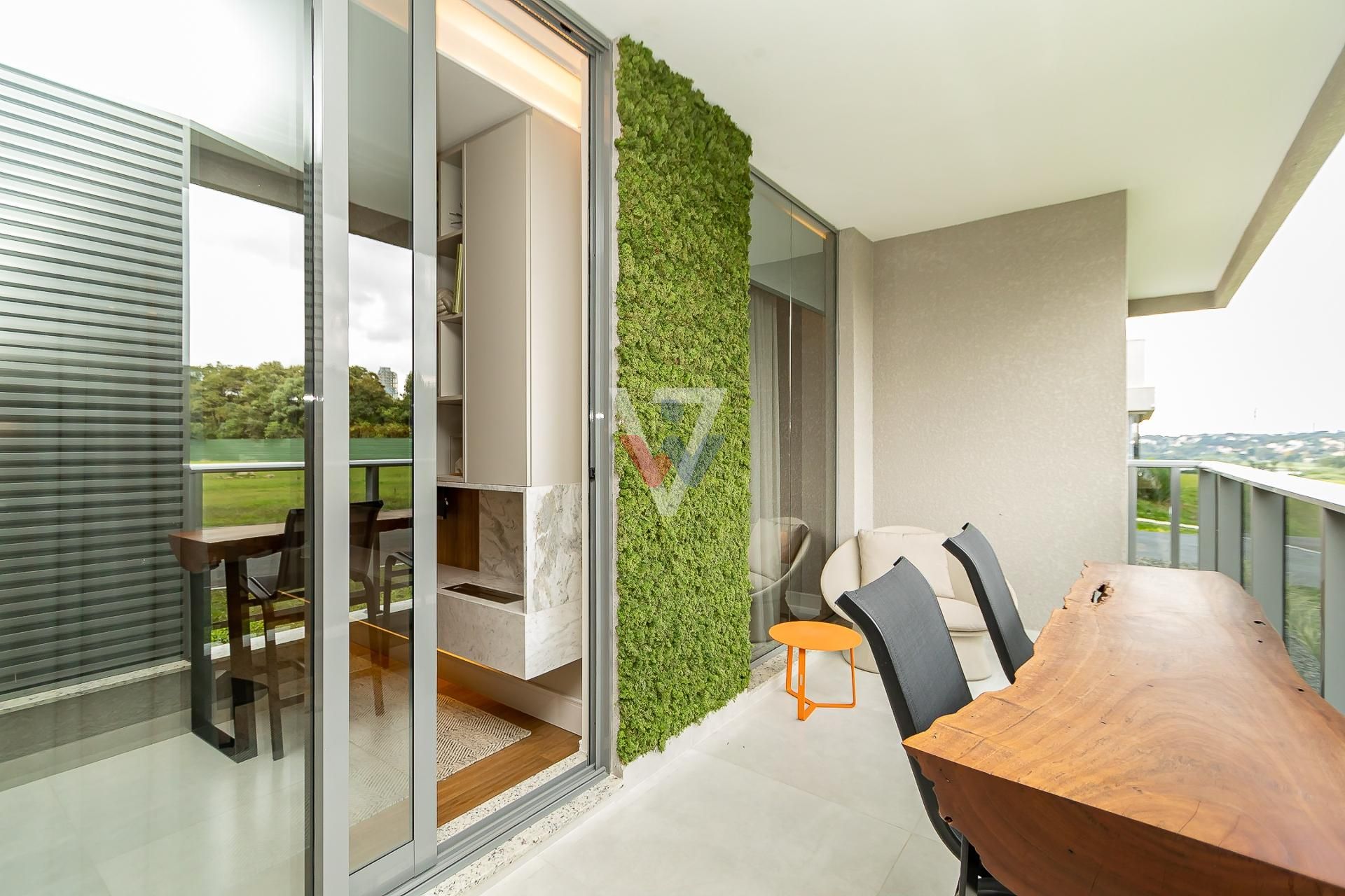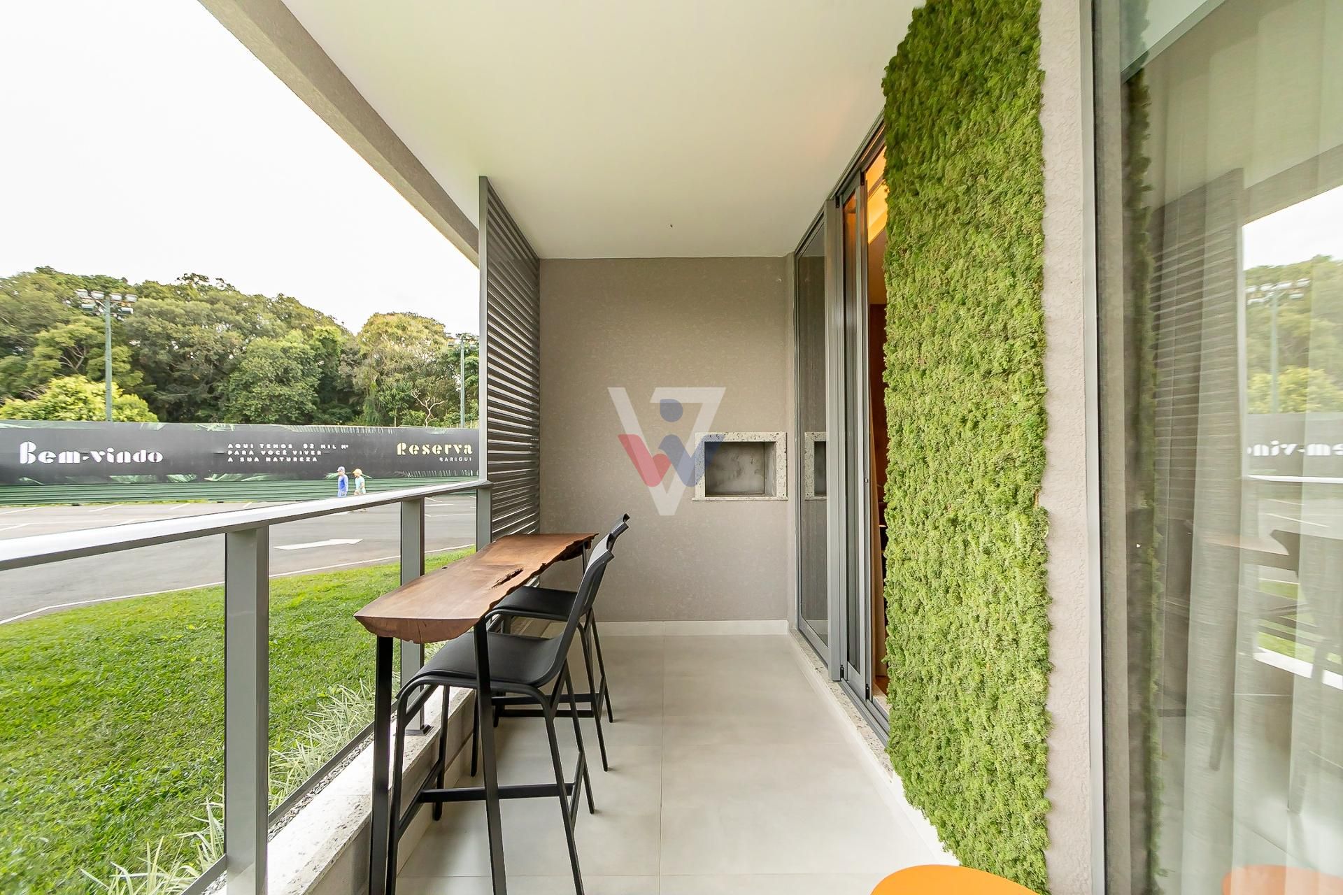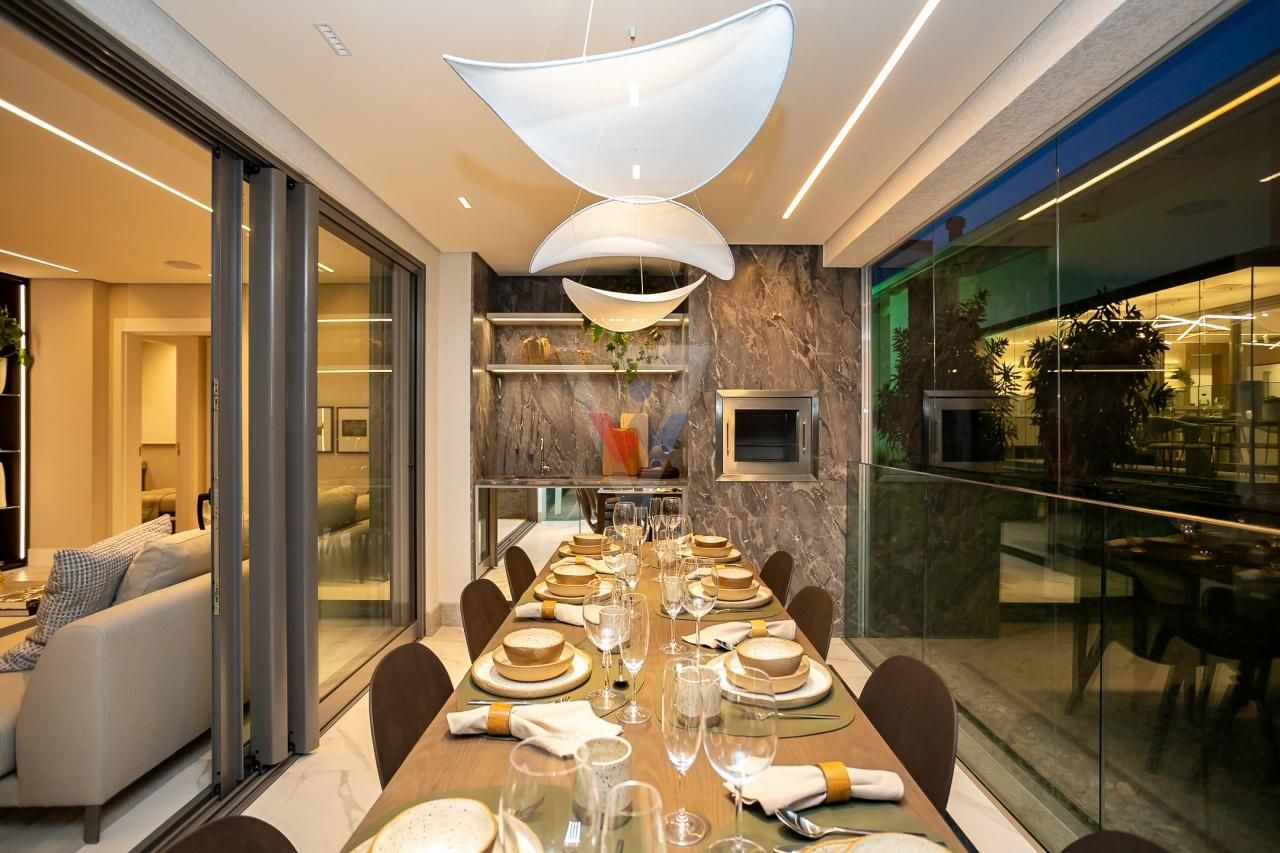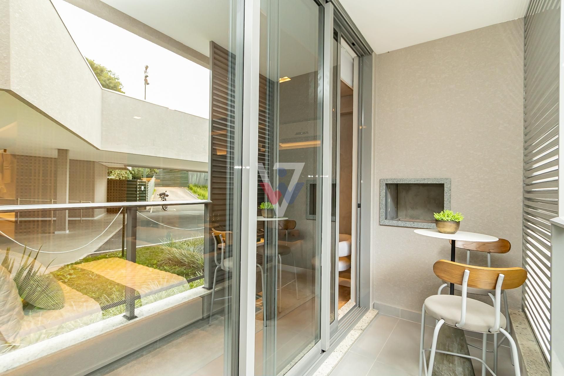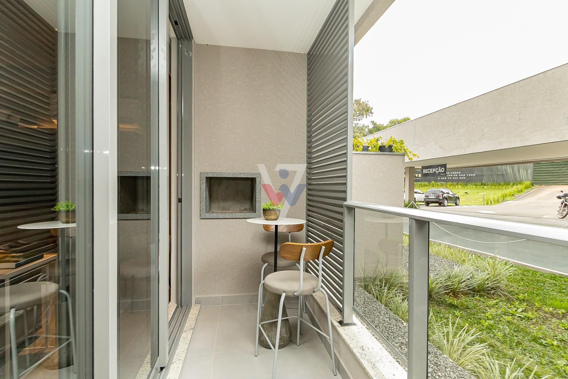 * Varanda e sacada com churrasqueira e portas de vidro que dão uma amplitude maior ao ambiente