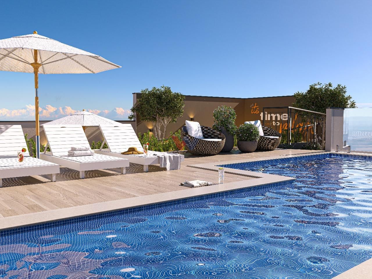 Rooftop com piscina, fireplace, wine bar, redário e horta urbana