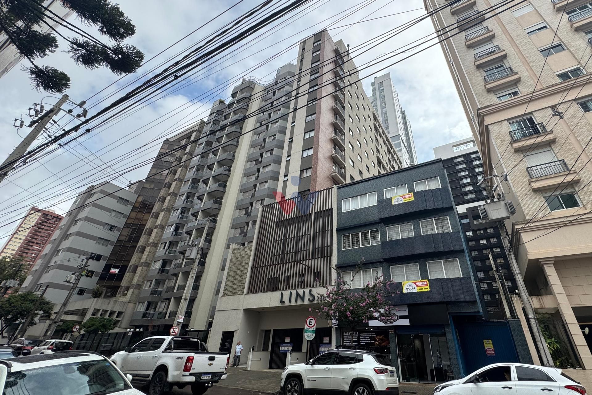 Studio à venda no Edifício Lins 236, no Centro de Curitiba. Totalmente mobiliado e decorado, pronto para morar ou investir.