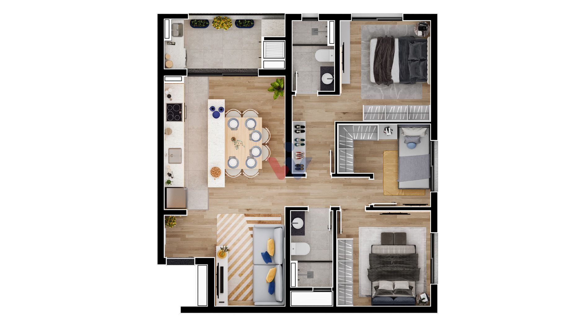O Residencial foi cuidadosamente projetado para maximizar sua comodidade, com espaços que valorizam a luz natural, ventilação e circulação. Todas as unidades estão preparadas para instalação de ar-condicionado*, garantindo conforto durante todo o ano.
