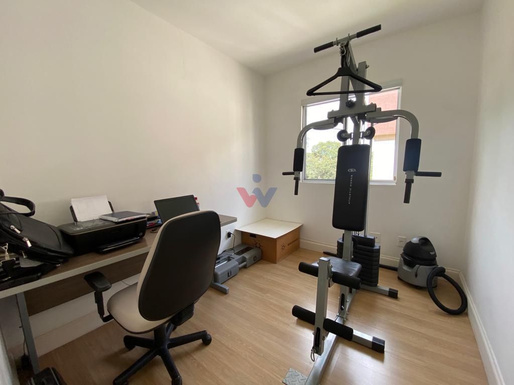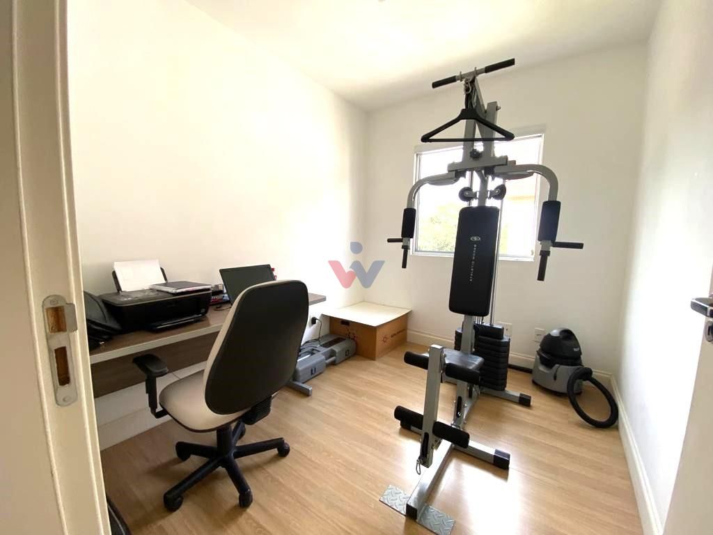 No momento, um dos quartos está sendo usado como um escritório e academia, o que é uma possibilidade mas não uma regra, mostrando a versatilidade que o espaço pode oferecer.