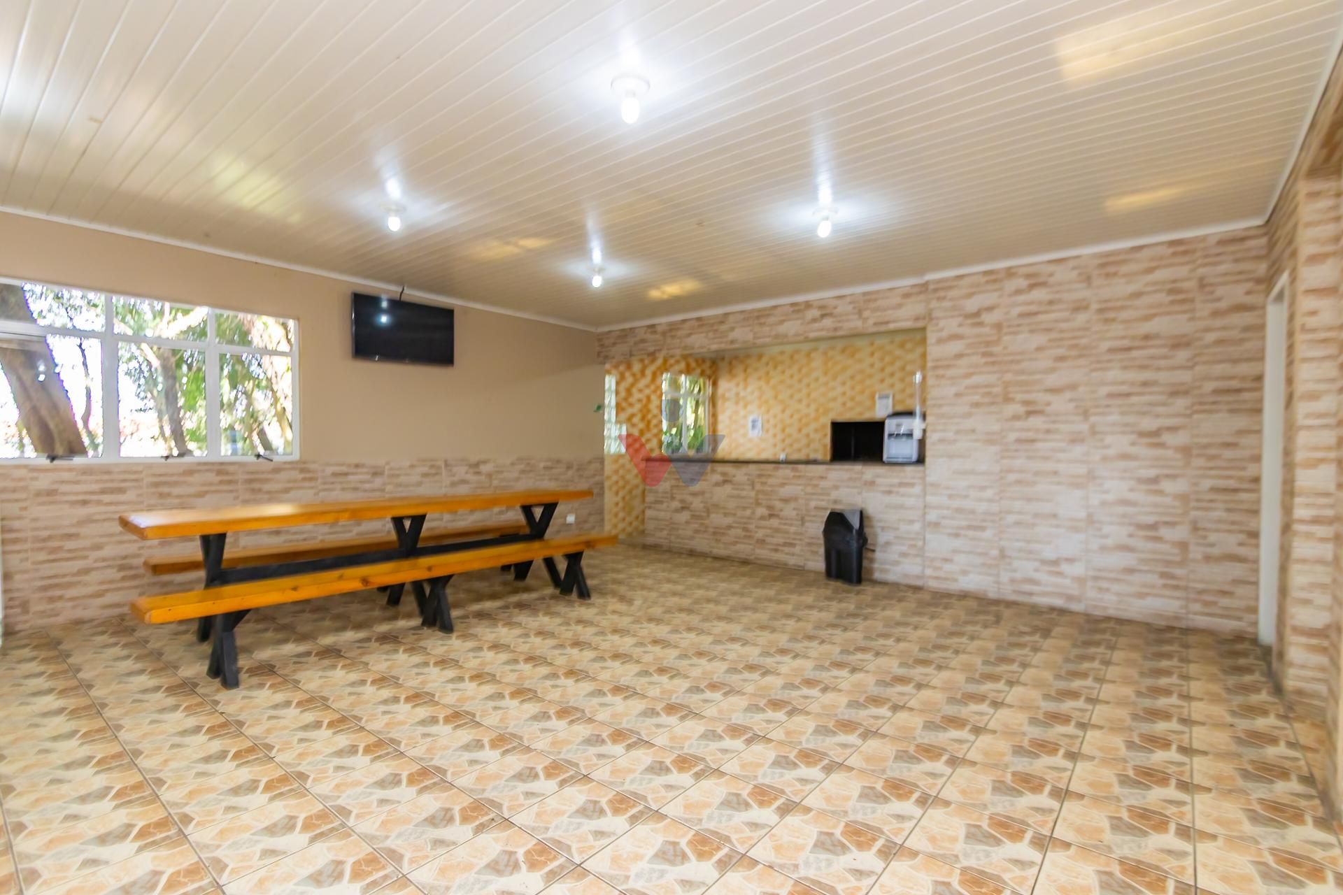 Bosque com quiosques, salão de festas, poço artesiano.