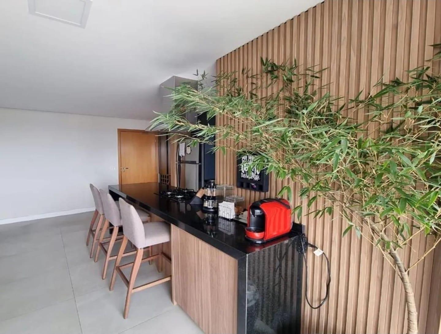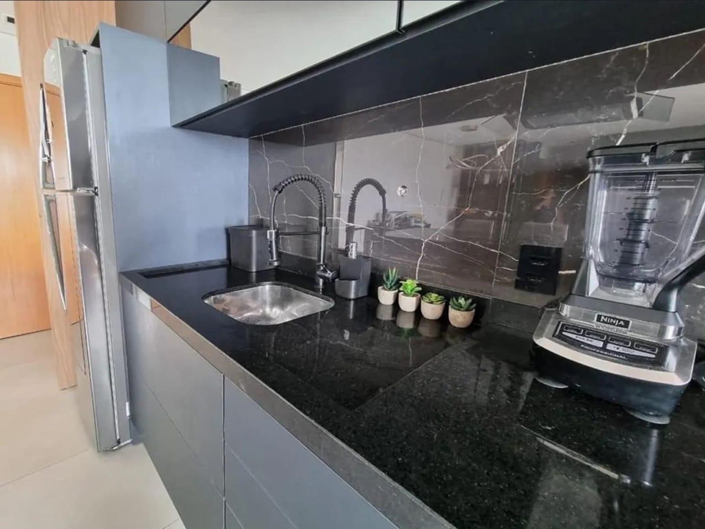Ficam no imóvel: móveis planejados, cooktop, geladeira, forno elétrico, lava-louças, lava-roupas, depurador, banquetas, cama de casal, cama de solteiro e sofá.