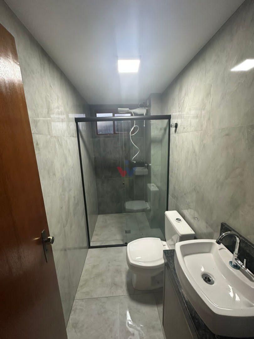 Banheiro social reformado, com armário planejado e acabamento moderno.