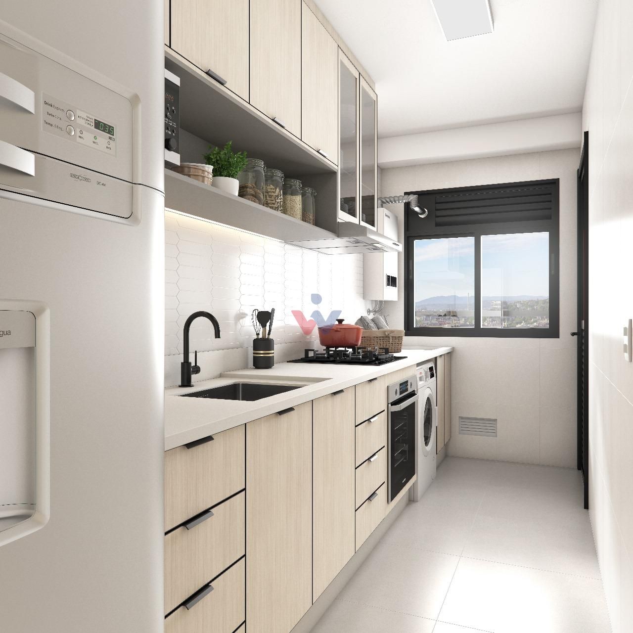 Revestimento até o teto na cozinha, banheiro e área de serviço: Elegância e durabilidade nos detalhes.