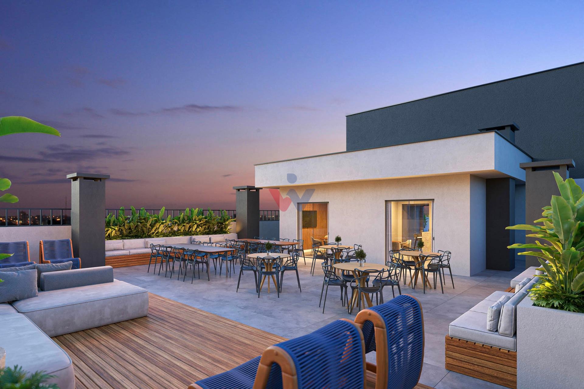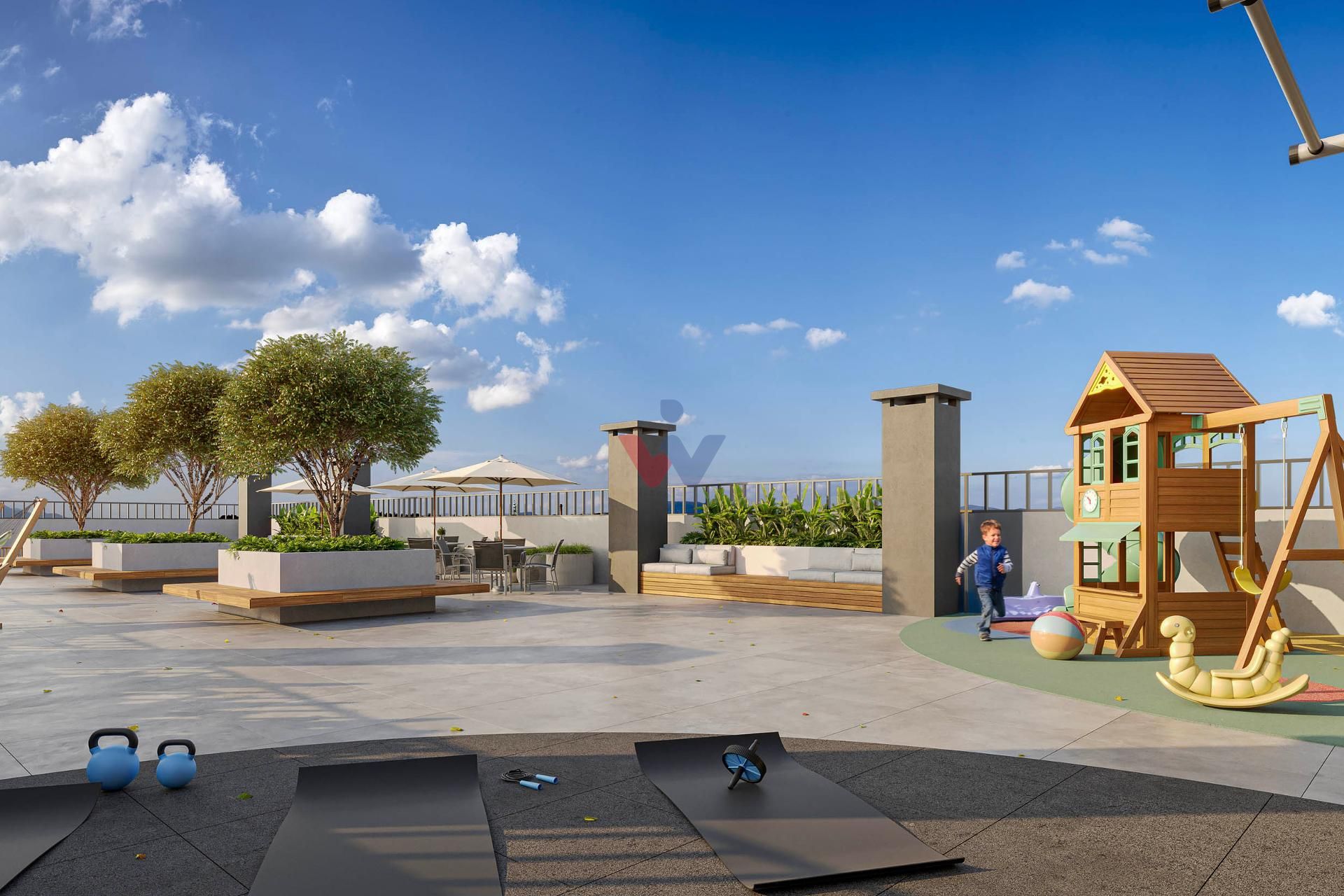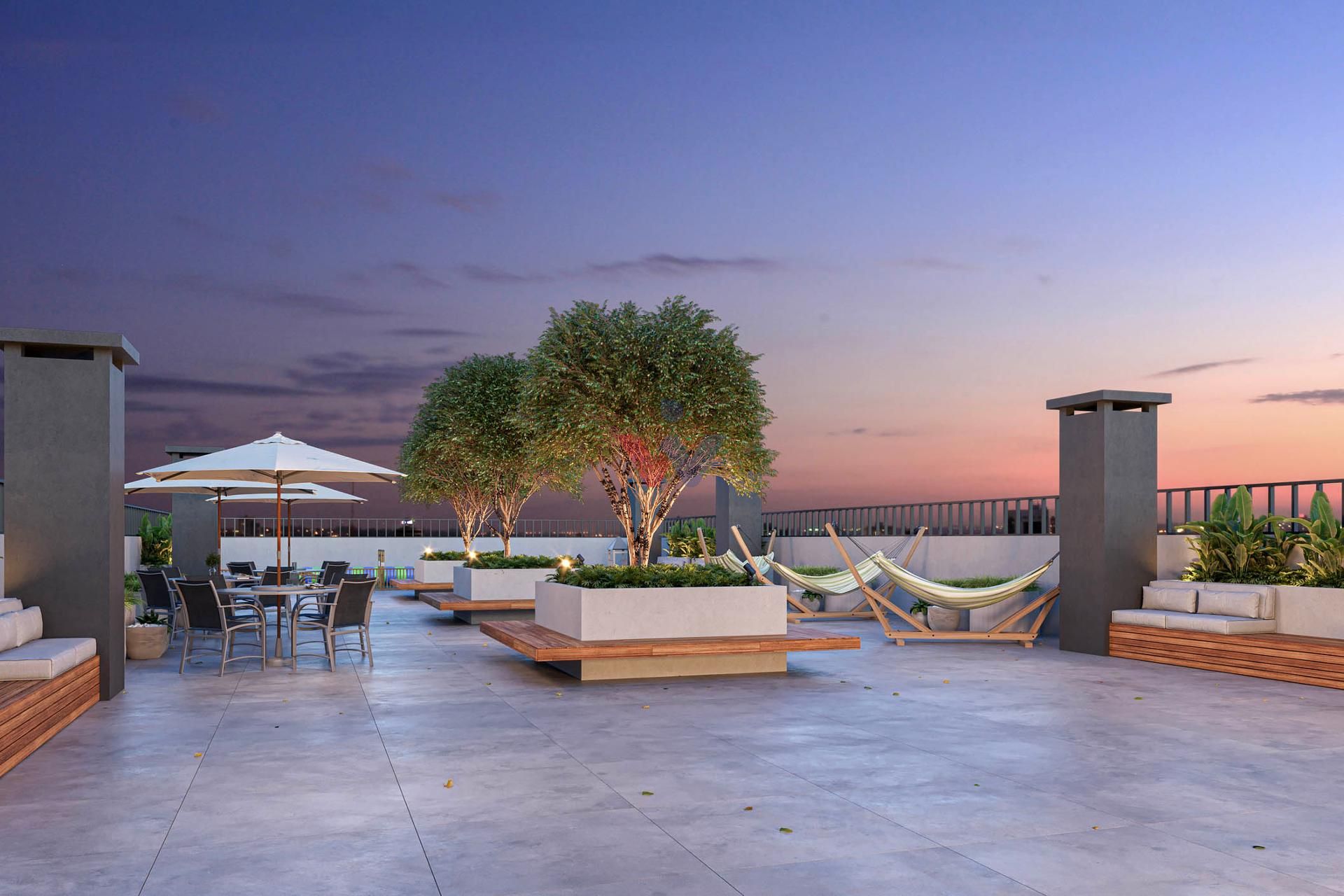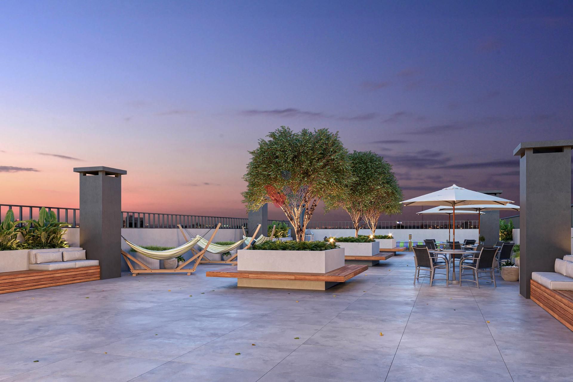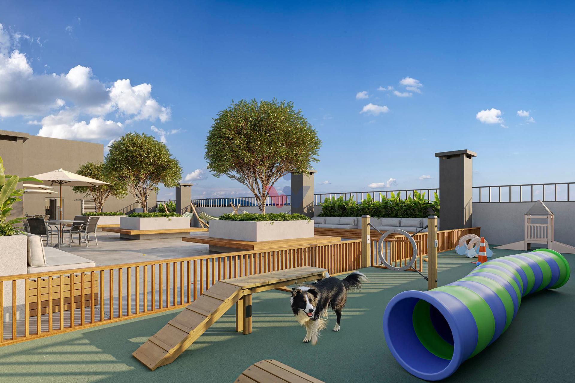 Rooftop panorâmico com salão de festas com churrasqueira, espaço pet, área kids e espaço bem-estar