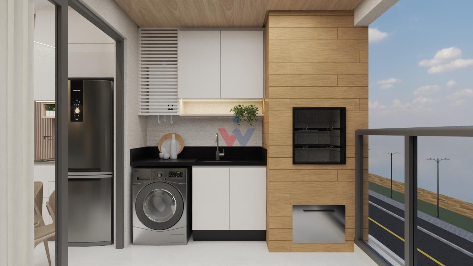 Sacadas com piso e paredes em porcelanato e teto vinílico