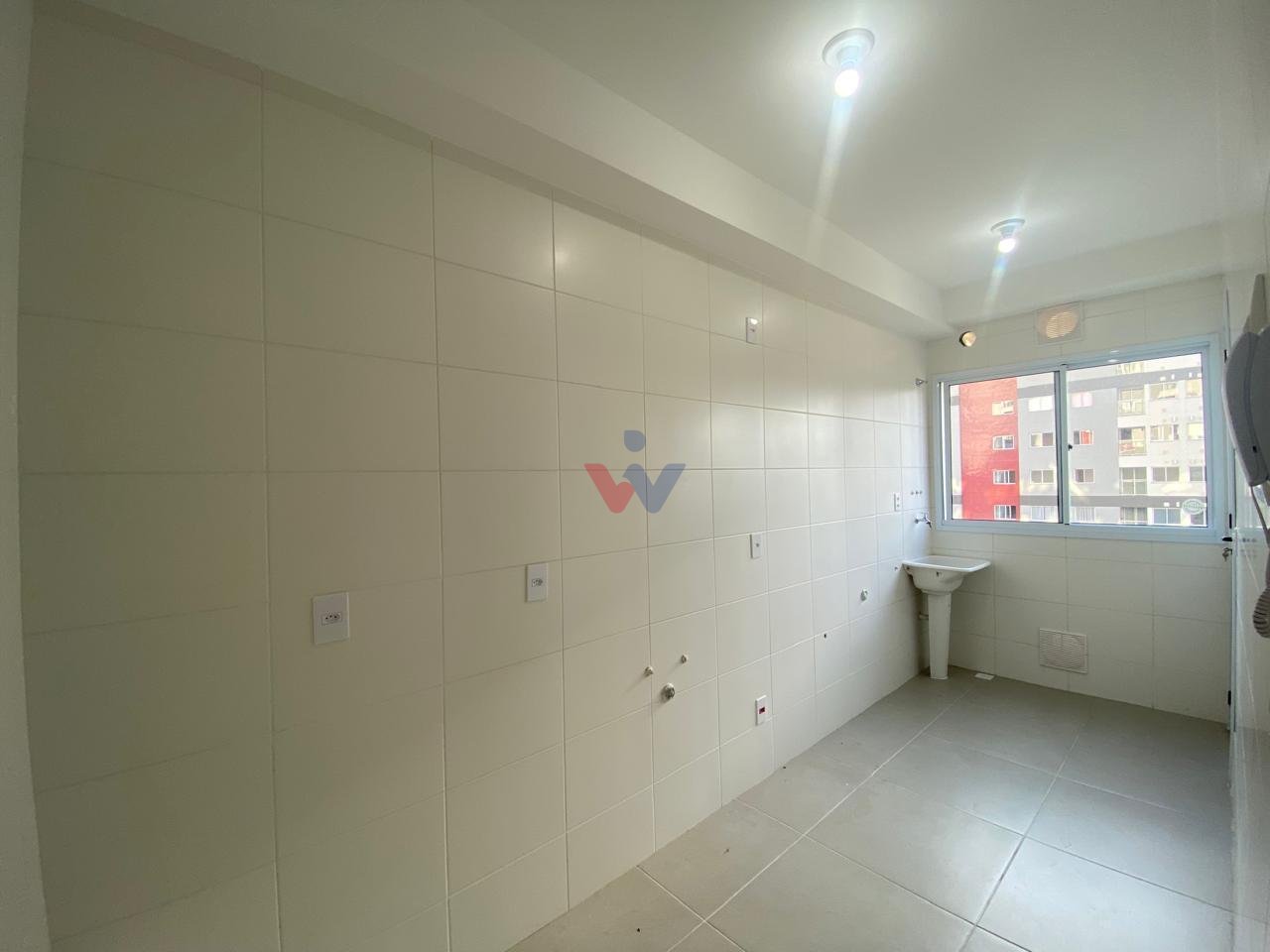 Revestimento cerâmico até o teto na cozinha, área de serviço e banheiro
