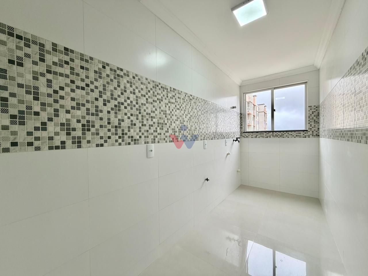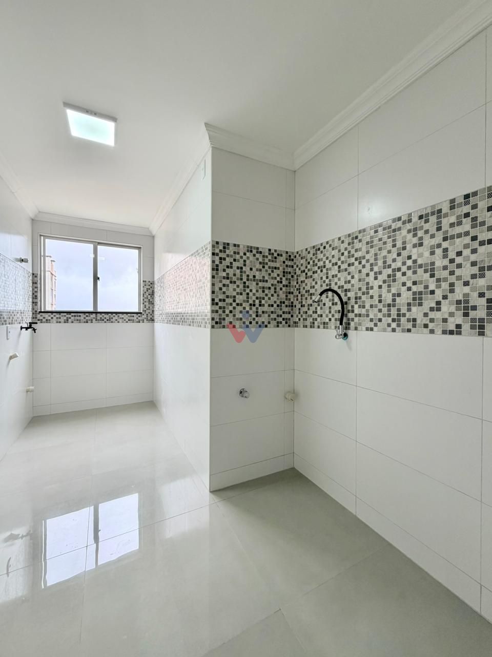 A cozinha é integrada à área de lavanderia, oferecendo praticidade no dia a dia e um bom aproveitamento do espaço. O ambiente é funcional e bem ventilado, facilitando as atividades domésticas.