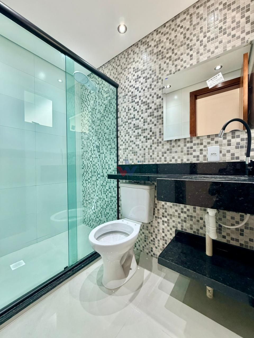 O banheiro social também foi reformado e conta com box em vidro, trazendo mais modernidade, organização e facilidade na limpeza.
