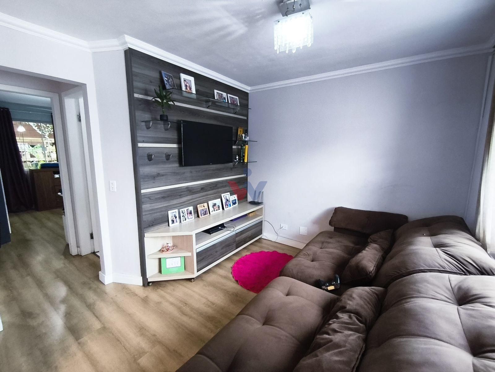 A sala é ampla e bem iluminada, ideal para dois ambientes, com teto rebaixado em gesso, sancas decorativas e luminárias modernas, criando um espaço acolhedor e sofisticado. O piso laminado na sala e nos quartos proporciona conforto térmico e um acabamento elegante.