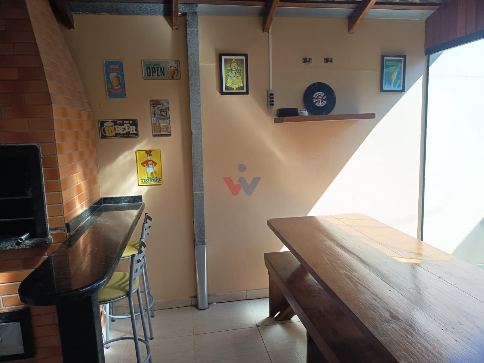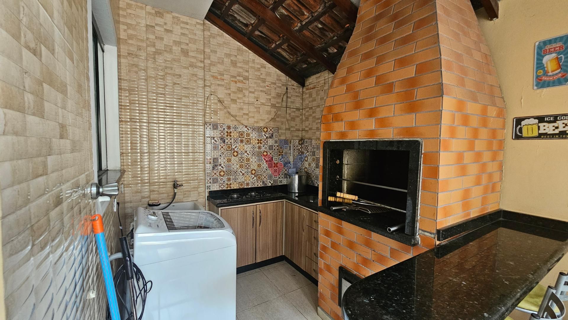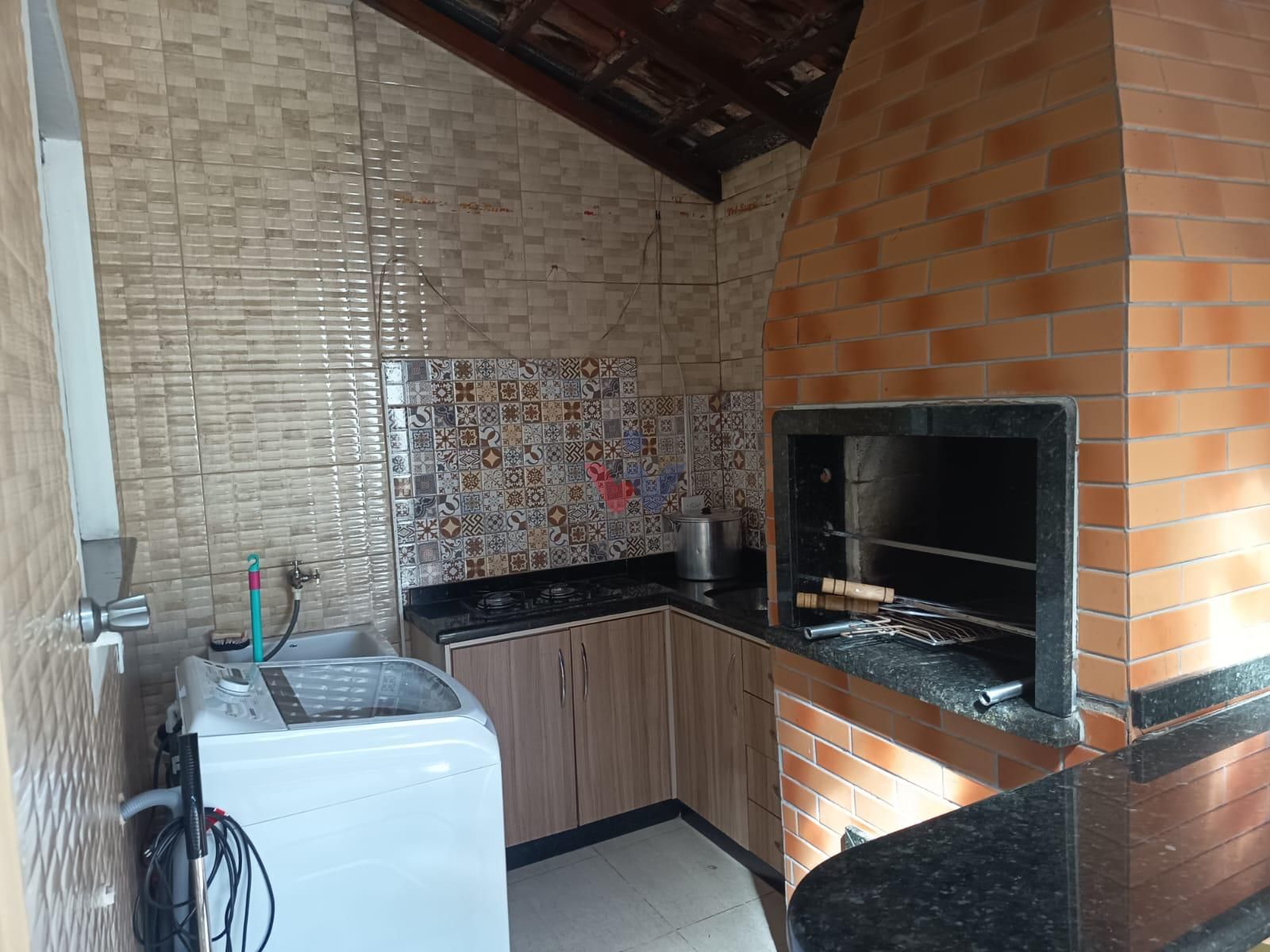 Espaço coberto nos fundos com churrasqueira e área de serviço, ideal para reunir amigos e familiares