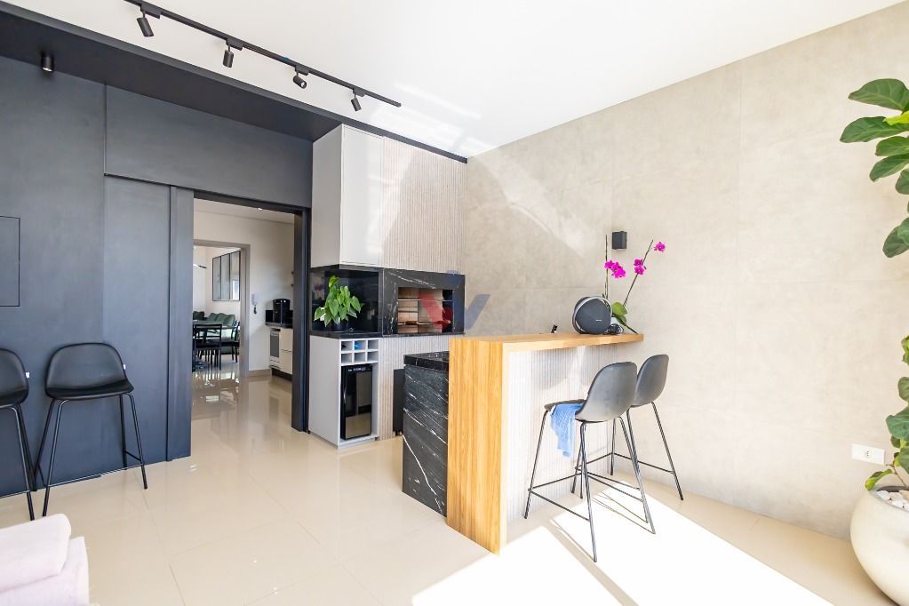 Estar integrado com a sala de jantar e cozinha. Churrasqueira gourmet com porta divisoria e amplo quintal privativo com espaco para piscina ou jacuzzi, lavanderia separada