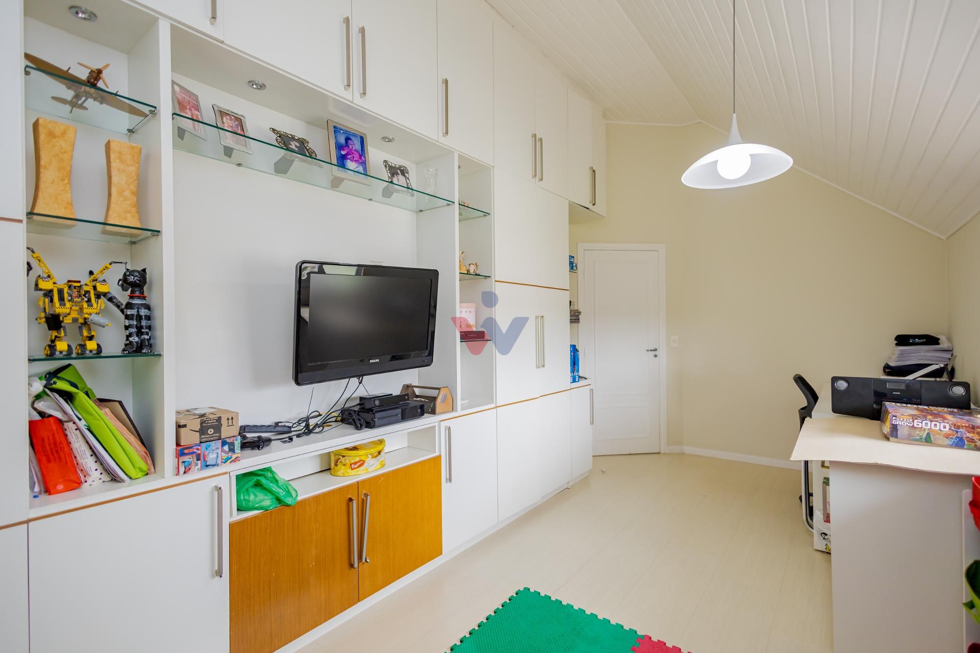 - Ático amplo transformado em espaço de entretenimento