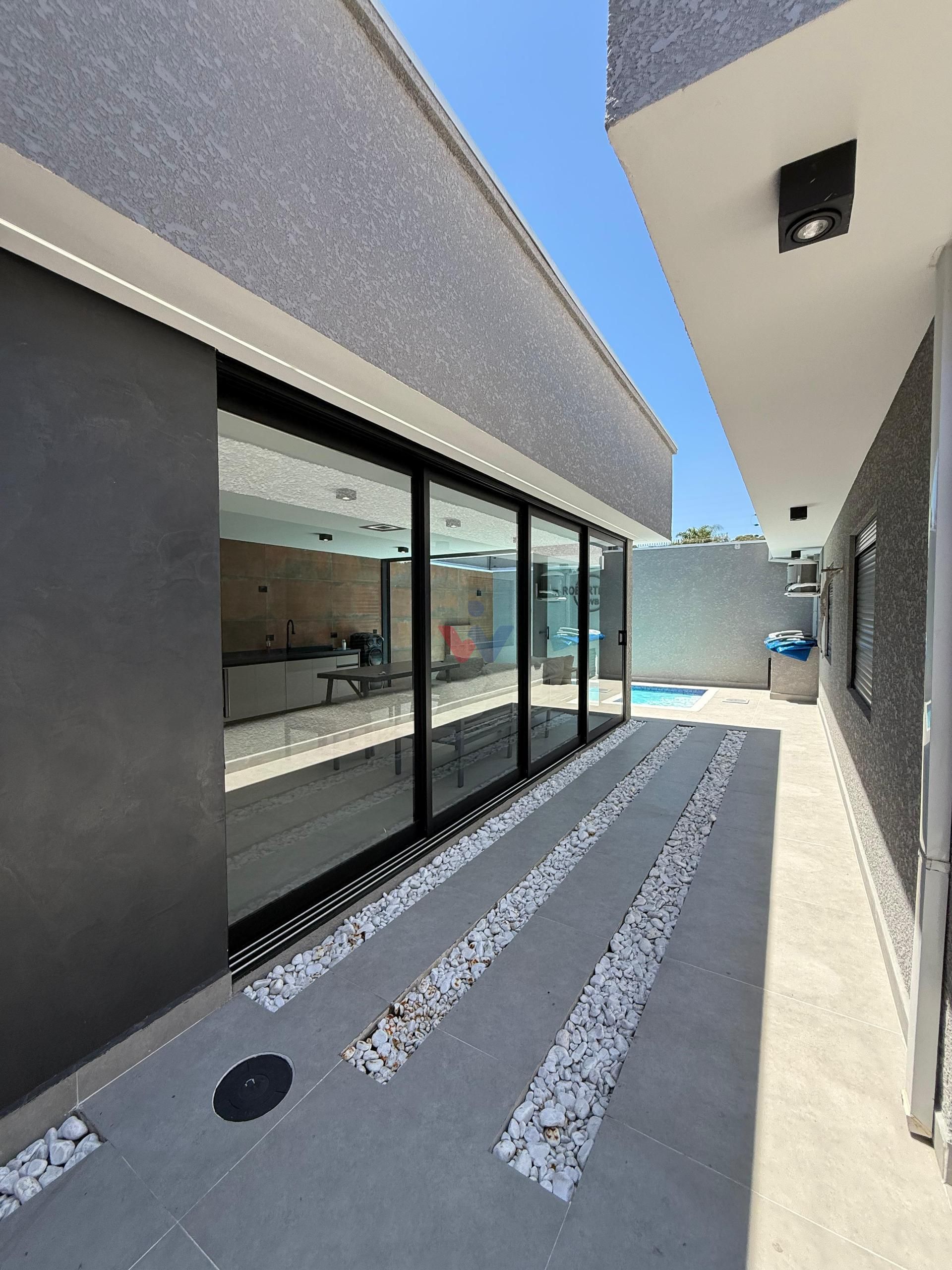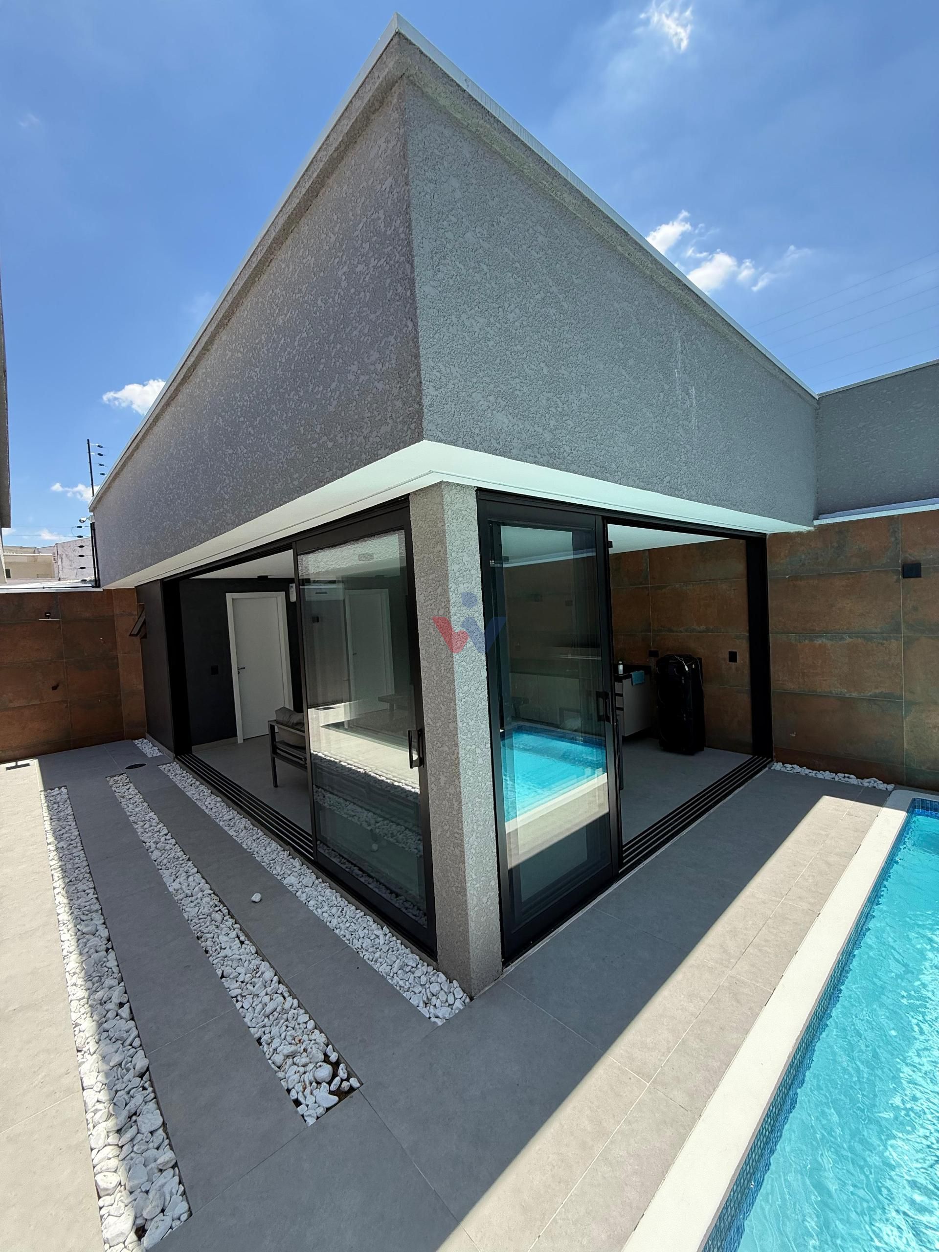 Construída em um terreno amplo de 360 m², a casa apresenta um projeto moderno, com pé-direito alto e ambientes planejados para oferecer excelente iluminação natural e ventilação, criando uma atmosfera elegante e acolhedora em todos os espaços. As janelas contam com persianas automáticas, agregando praticidade e modernidade ao imóvel, enquanto o sistema de água quente e fria atende toda a residência, proporcionando mais conforto para os moradores.