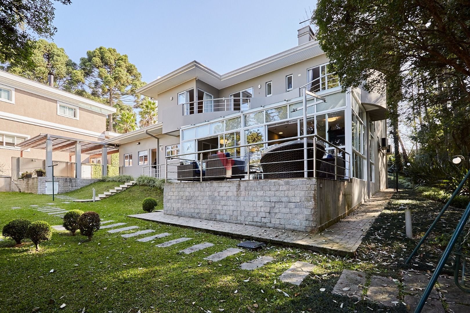 Com 368 m² de área privativa (285 m² averbados) em um terreno de 1.245 m², esta casa de alto padrão está cercada por bosques preservados e jardins exuberantes, criando um refúgio urbano incomparável.