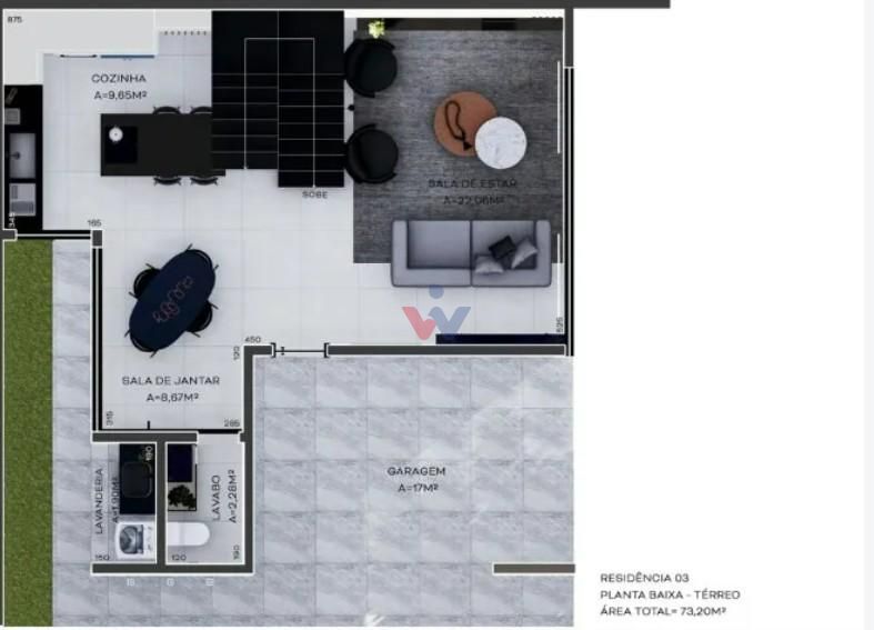 Sala de estar e jantar integradas, cozinha ampla e lavabo;
