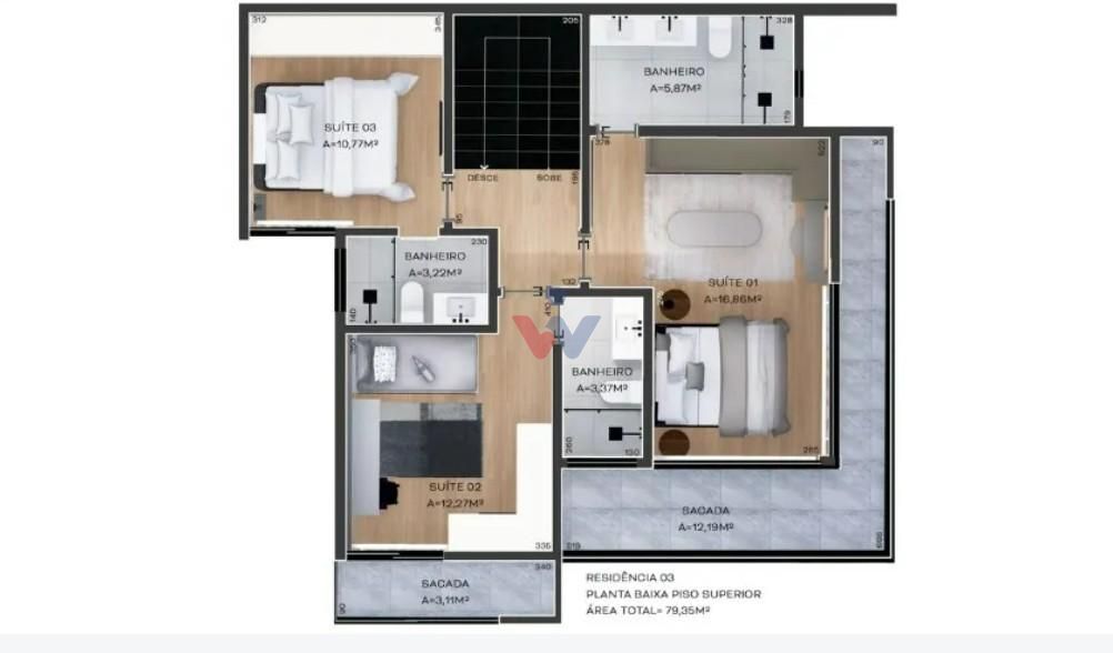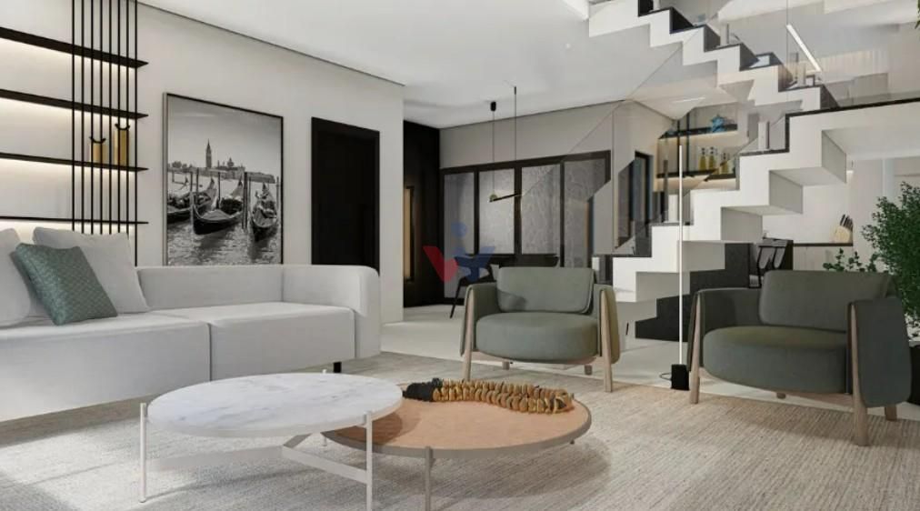 Apresentamos este tríplex de alto padrão no centro de São José dos Pinhais, distribuído em 3 pavimentos cuidadosamente planejados: