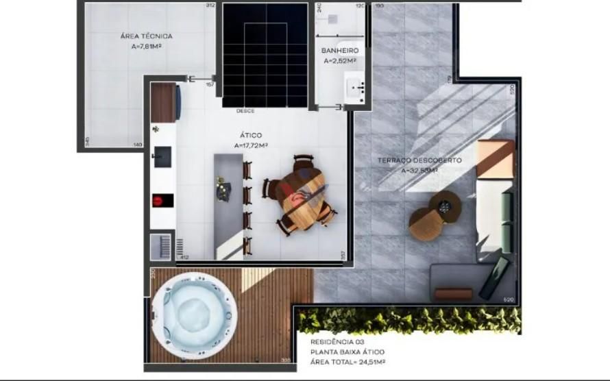 3 suítes com sacada privativa e ático com espaço versátil;