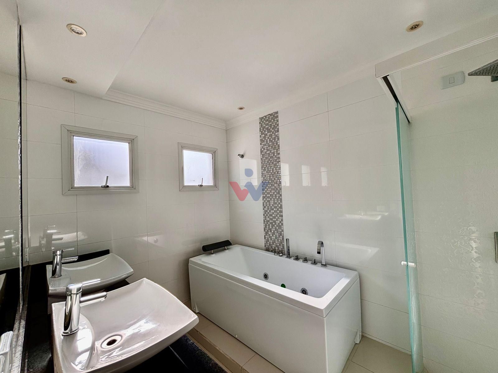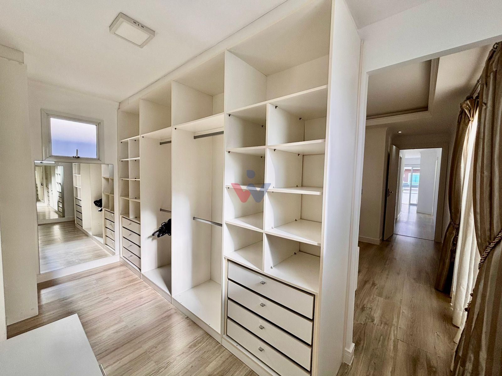 Suíte master com closet com armários, hidromassagem e banheira