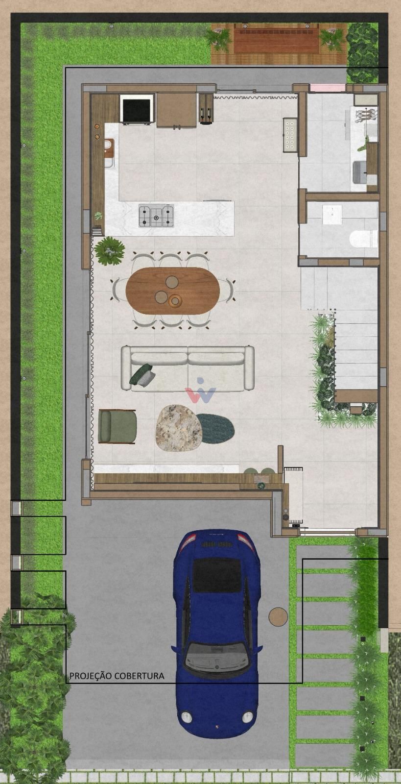 leveza, ventilação e iluminação natural. A arquitetura desta residência dialoga com a modernidade da arquitetura brasileira, caracterizada por suas linhas retas, formas puras e linguagem minimalista. A fachada apresenta traços leves, materiais naturais e uma paleta de cores suaves, criando uma imagem harmônica e atemporal. Elementos como brises, painéis de madeira, concreto