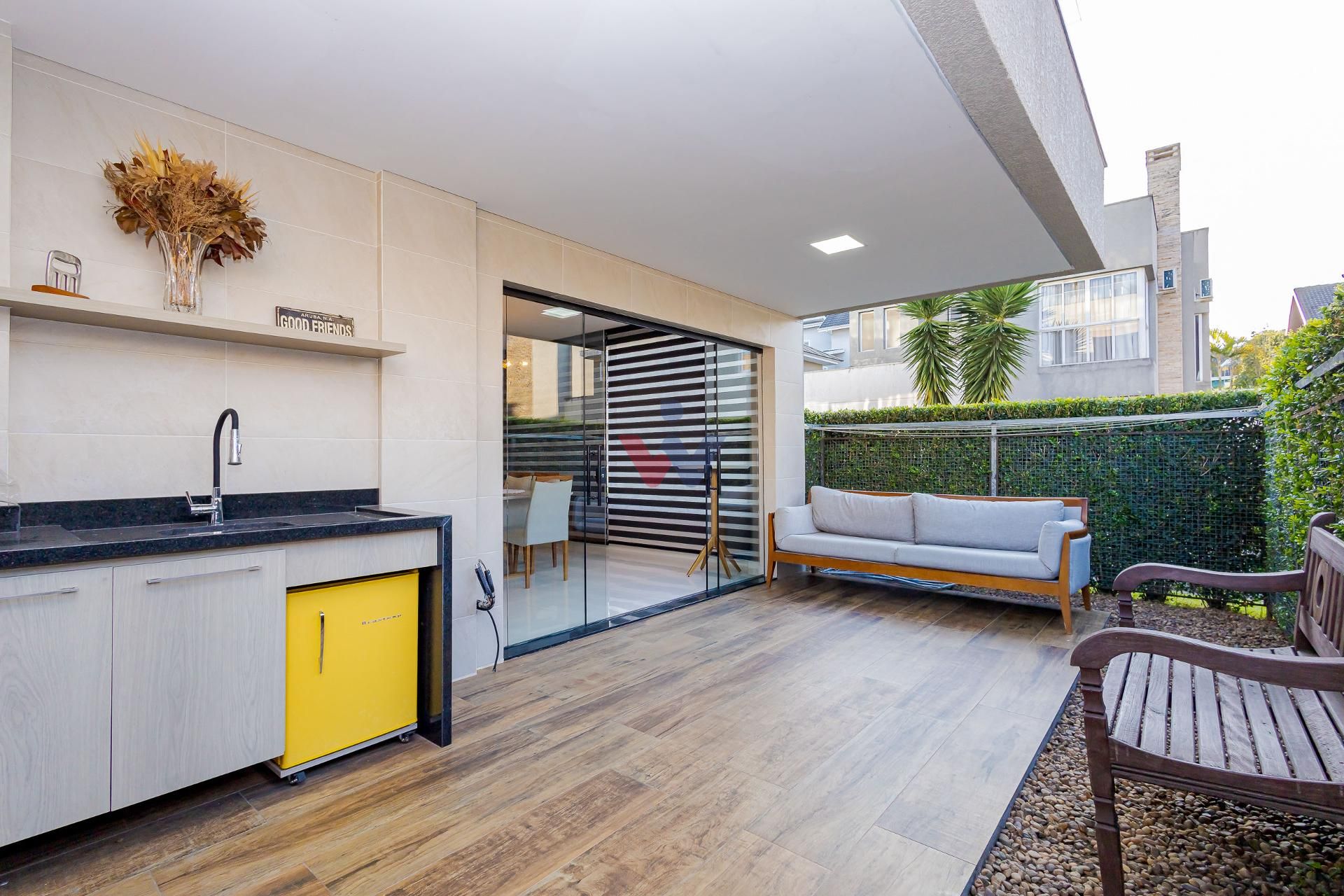 * A casa será entregue com todos os móveis planejados fixos, eletros fixos de cozinha, aparelhos de ar-condicionado, além de gesso e projeto luminotécnico, piso porcelanato e laminado, blackouts, persianas e cortinas