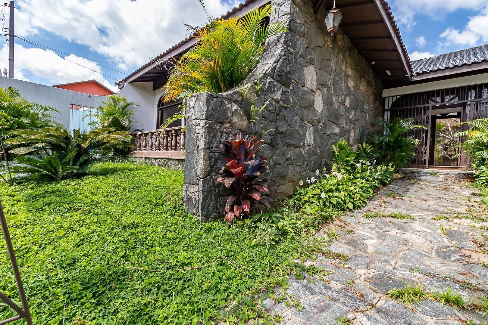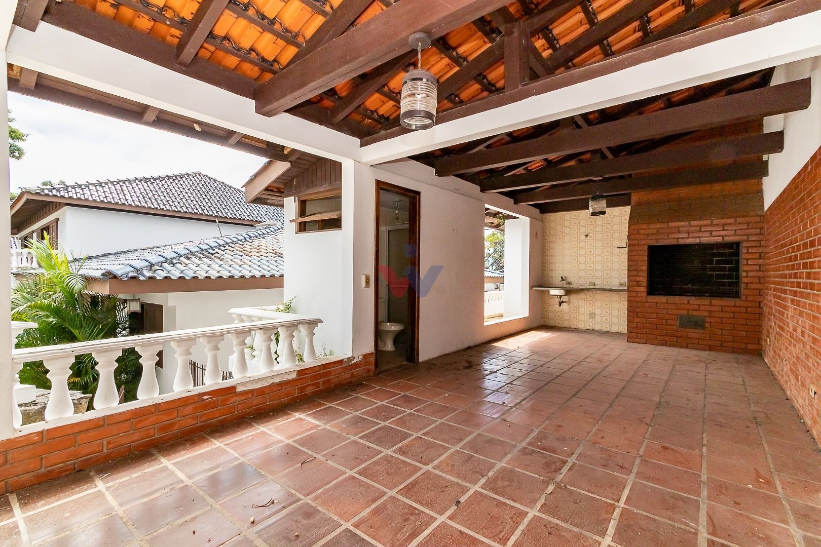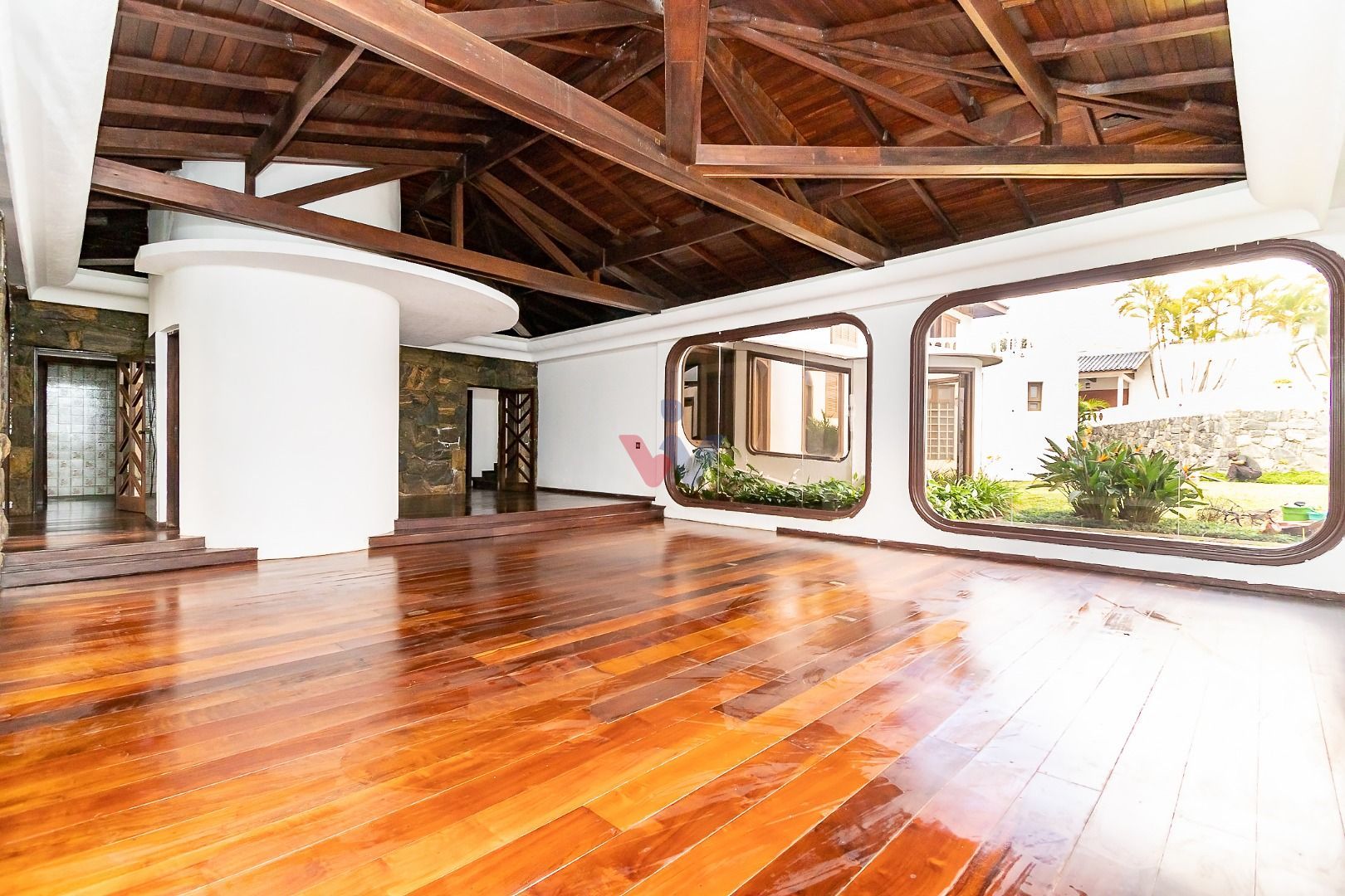 Venezianas em madeira, pisos em madeira natural nas áreas sociais e íntimas, pisos decorados nas áreas frias, pias em madeira ornamental, forro com ripamento em madeira de lei, paredes com pedras naturais e jardim exuberante, que valorizam o estilo clássico e sofisticado do imóvel.