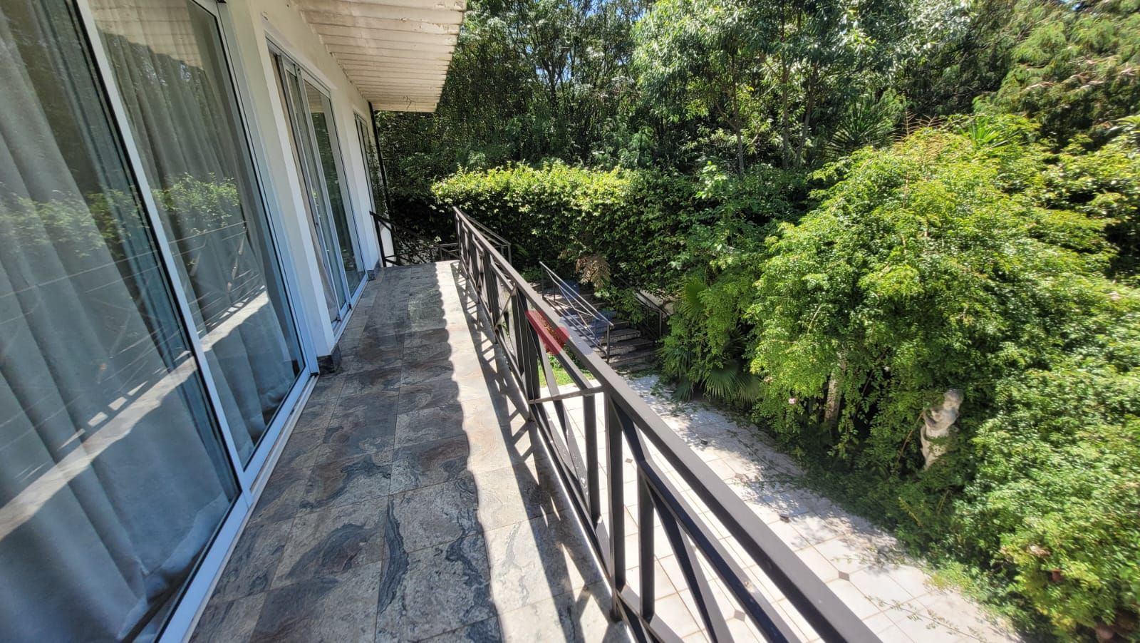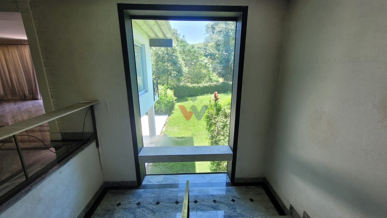 Galeria de estar com vista para o jardim