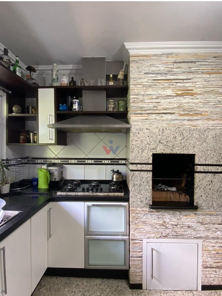 Cozinha planejada com forno, cooktop, coifa e churrasqueira