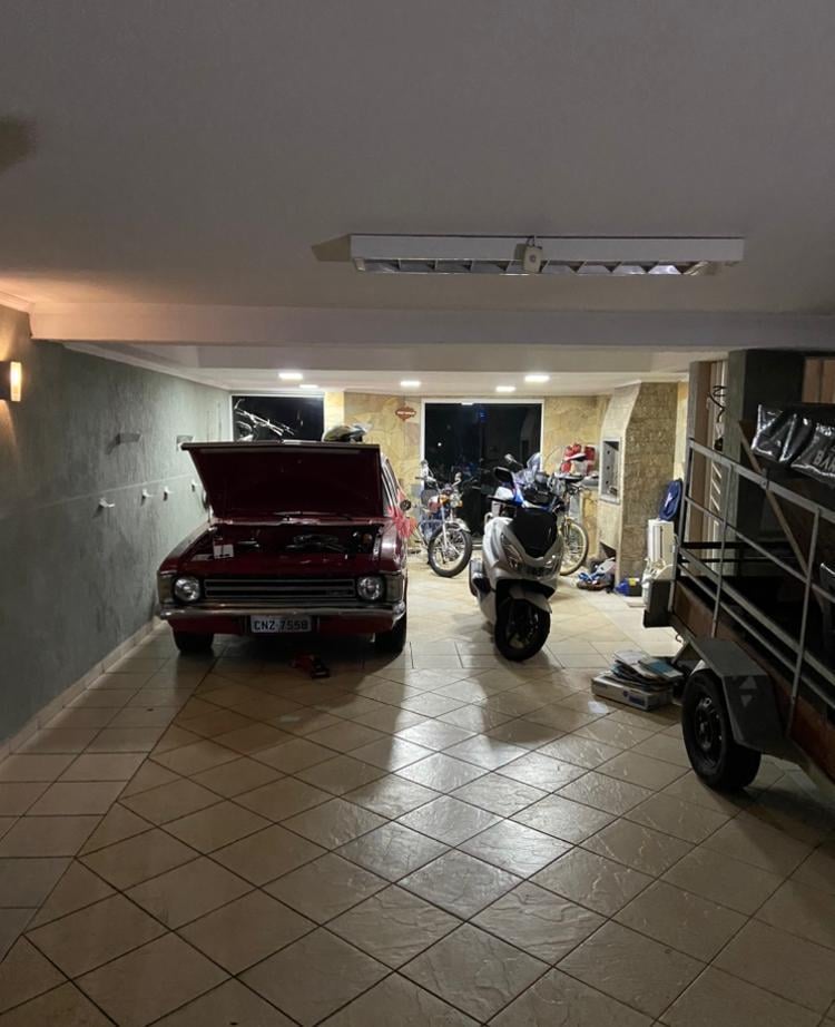 Garagem coberta para até 4 carros, com churrasqueira
