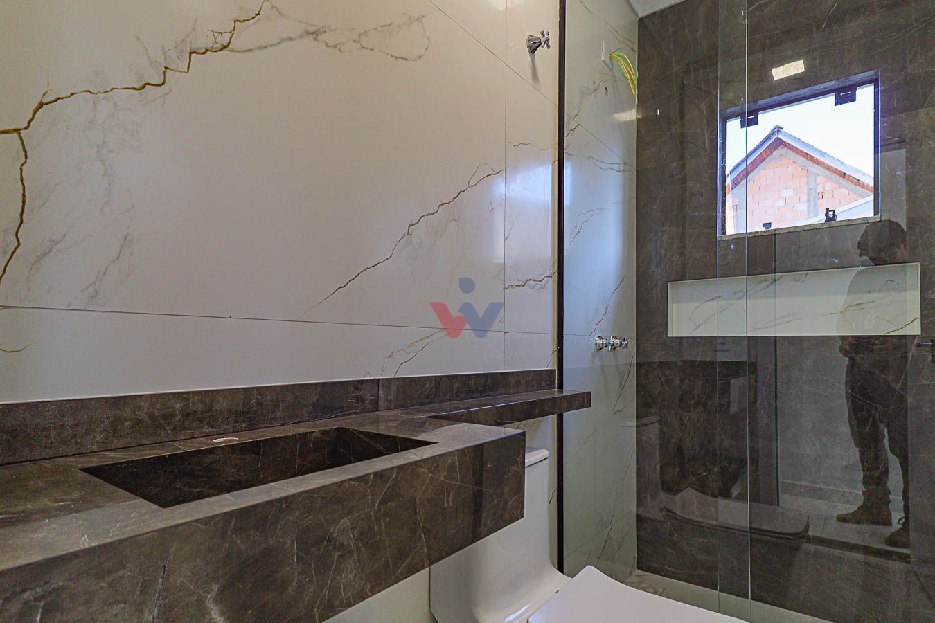 -Banheiros: 3 no total (1 lavabo, 1 social e 1 da suíte), todos com pias esculpidas em porcelanato.