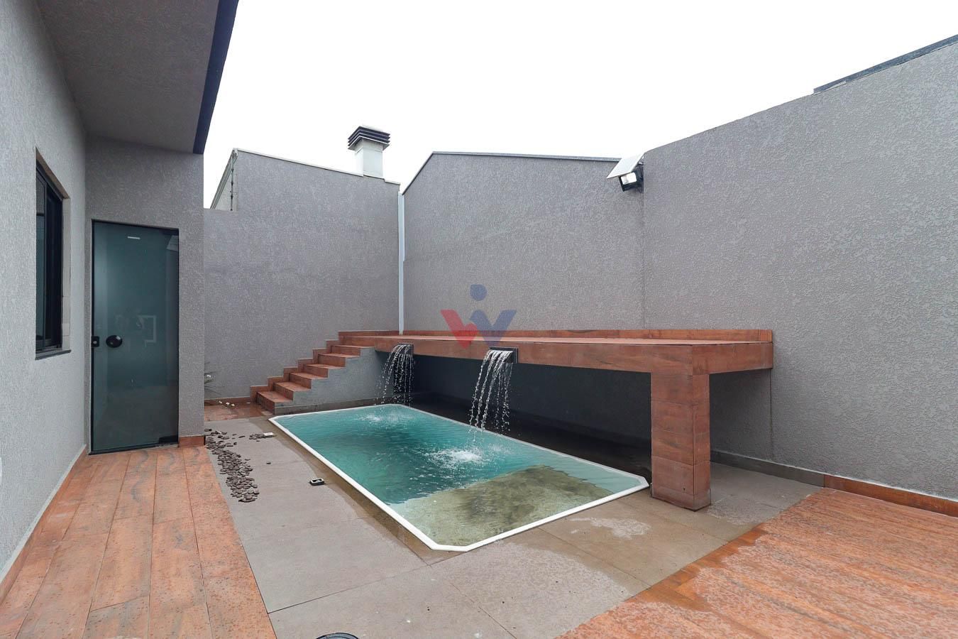 - Edícula com Lavanderia Fechada: Pia de porcelanato esculpido, coberta de vidro para mais iluminação.