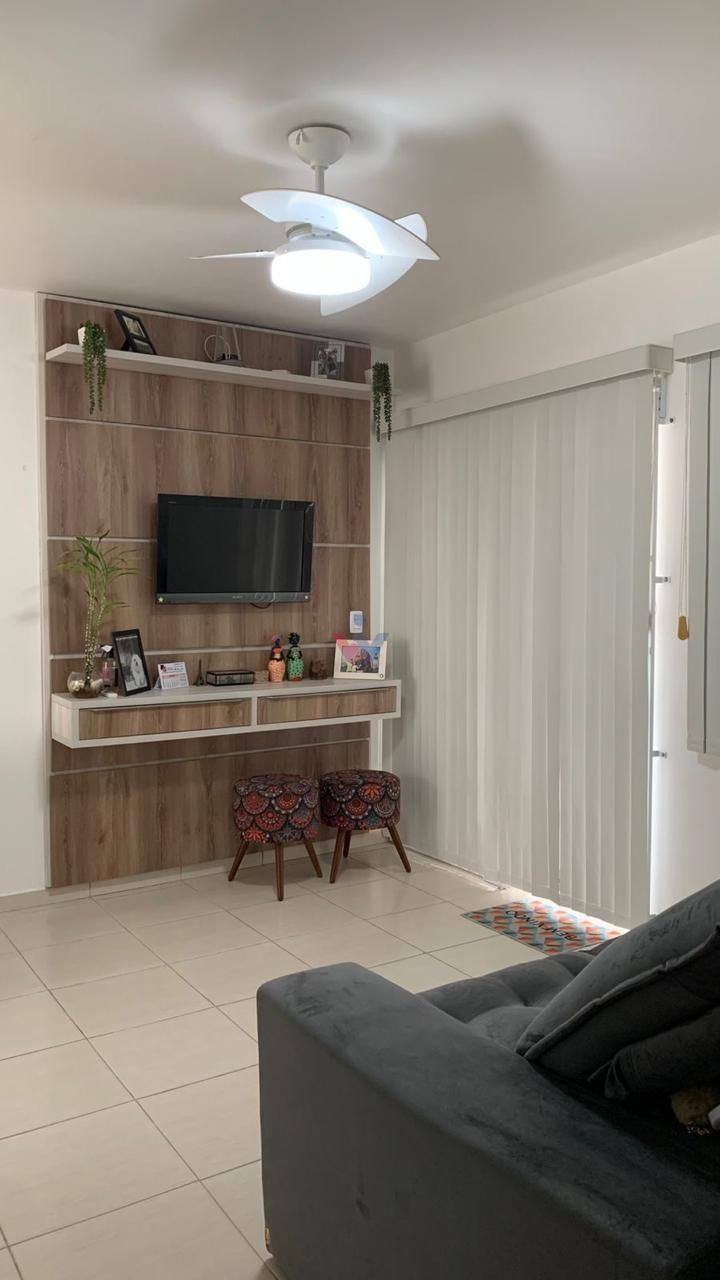 Sala de estar ampla, equipada com ventilador, perfeita para momentos de descanso ou confraternizações;