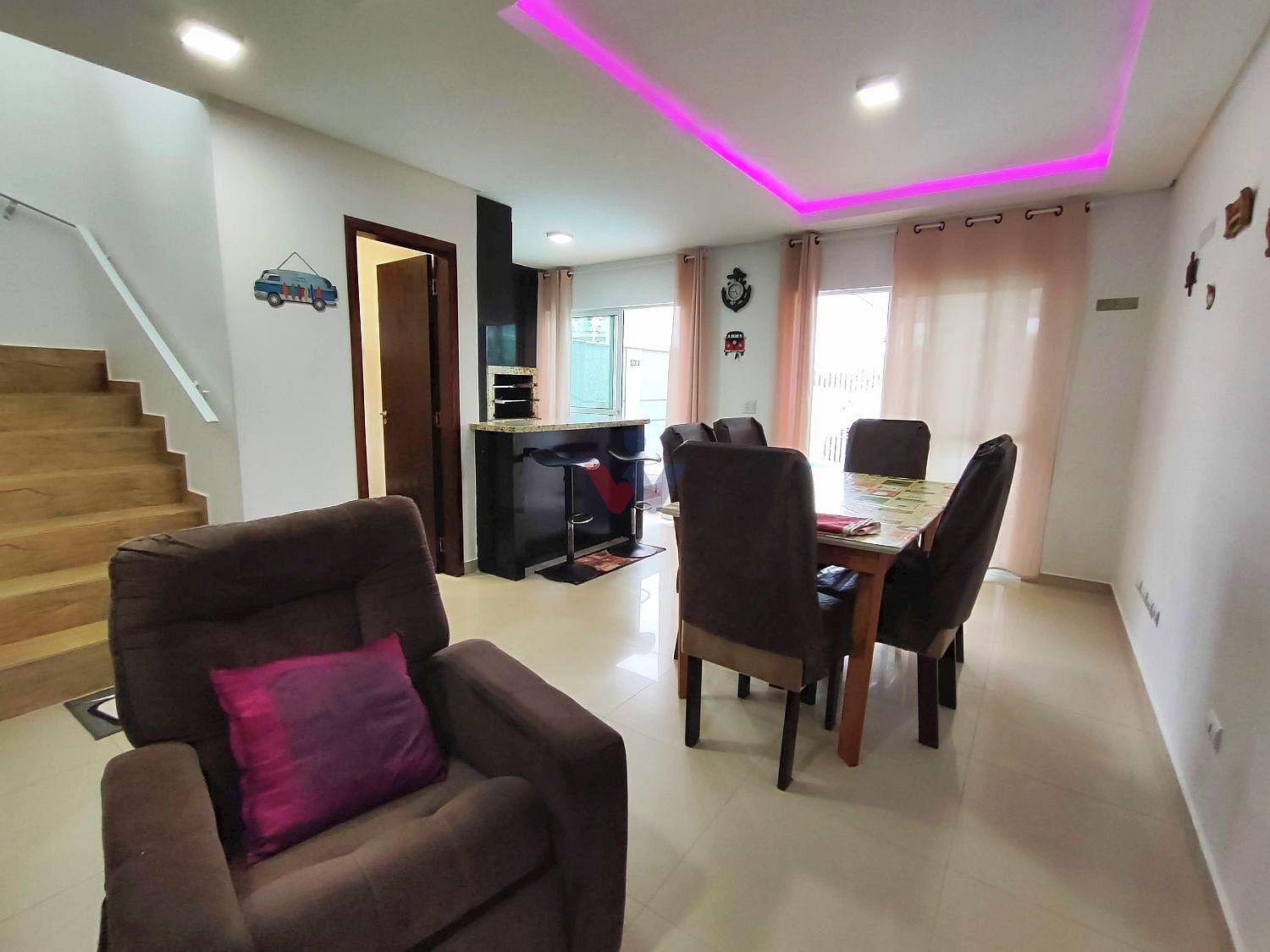 Excelente sobrado, pronto para morar, com 3 quartos (1 suíte), 2 com sacada e ar condicionado, sala integrada à copa com churr...