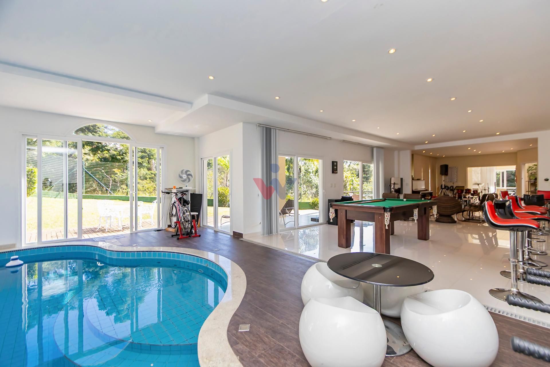 - Escritório amplo e funcional: Espaço de trabalho completo com lareira e até sala de reunião, ideal para quem trabalha de casa com conforto e privacidade;