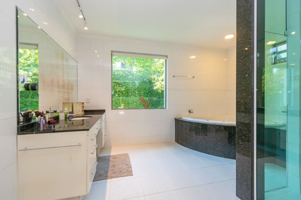 Suíte máster com closet espaçoso, banheira de hidromassagem e sacada privativa