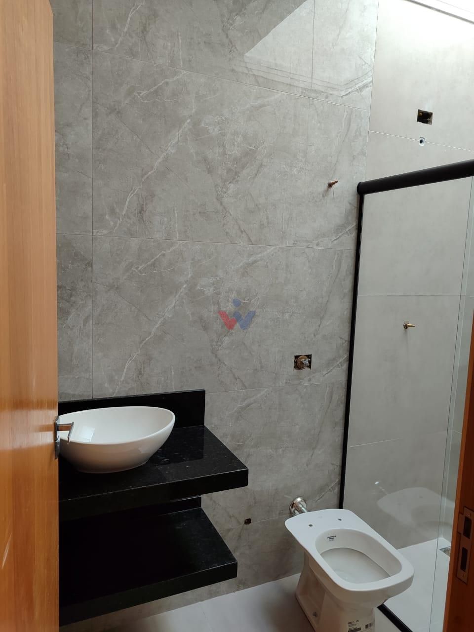 Banheiro social completo, já com box de vidro;