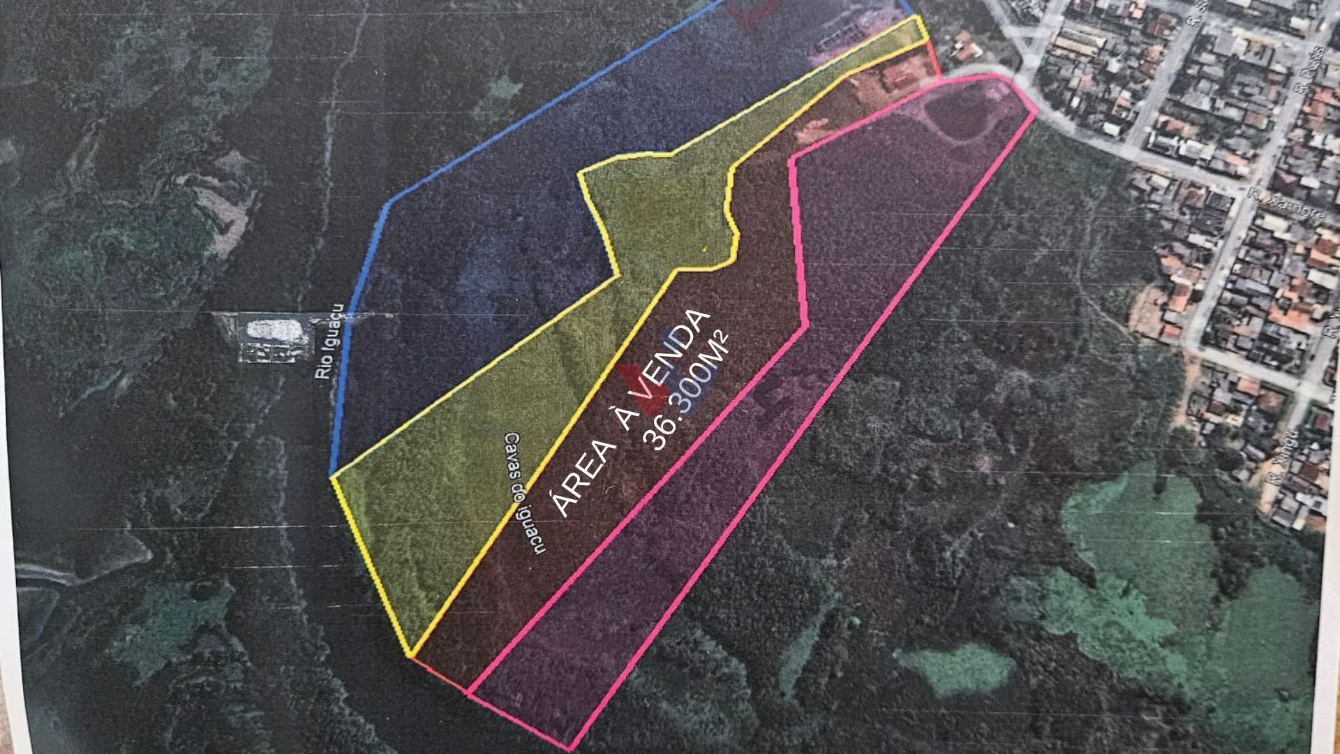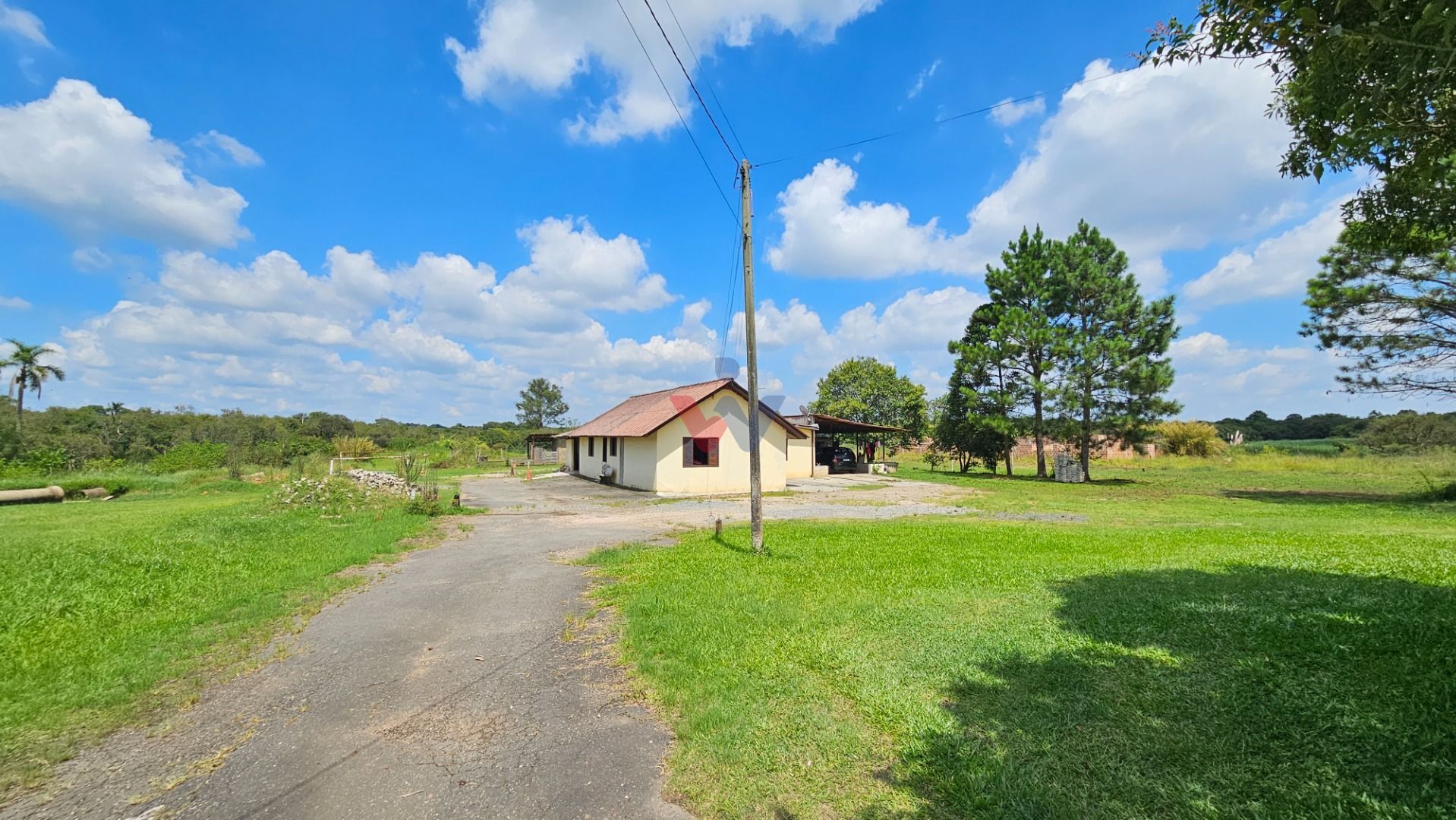 A propriedade conta com água encanada, rede de esgoto da Sanepar e energia elétrica, além de fazer fundos com o Rio Iguaçu e possuir algumas cavas.