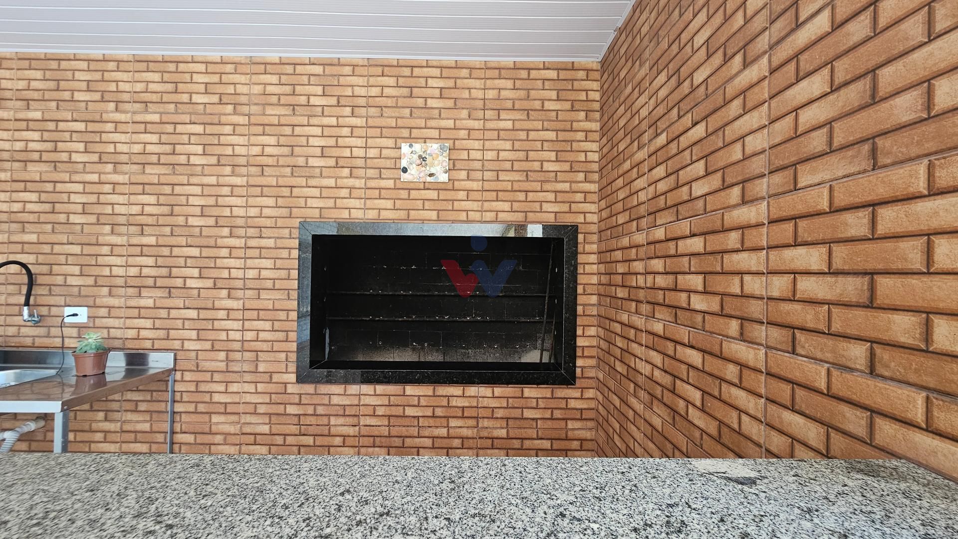 Espaço gourmet completo, com churrasqueira, pia de apoio e lavabo