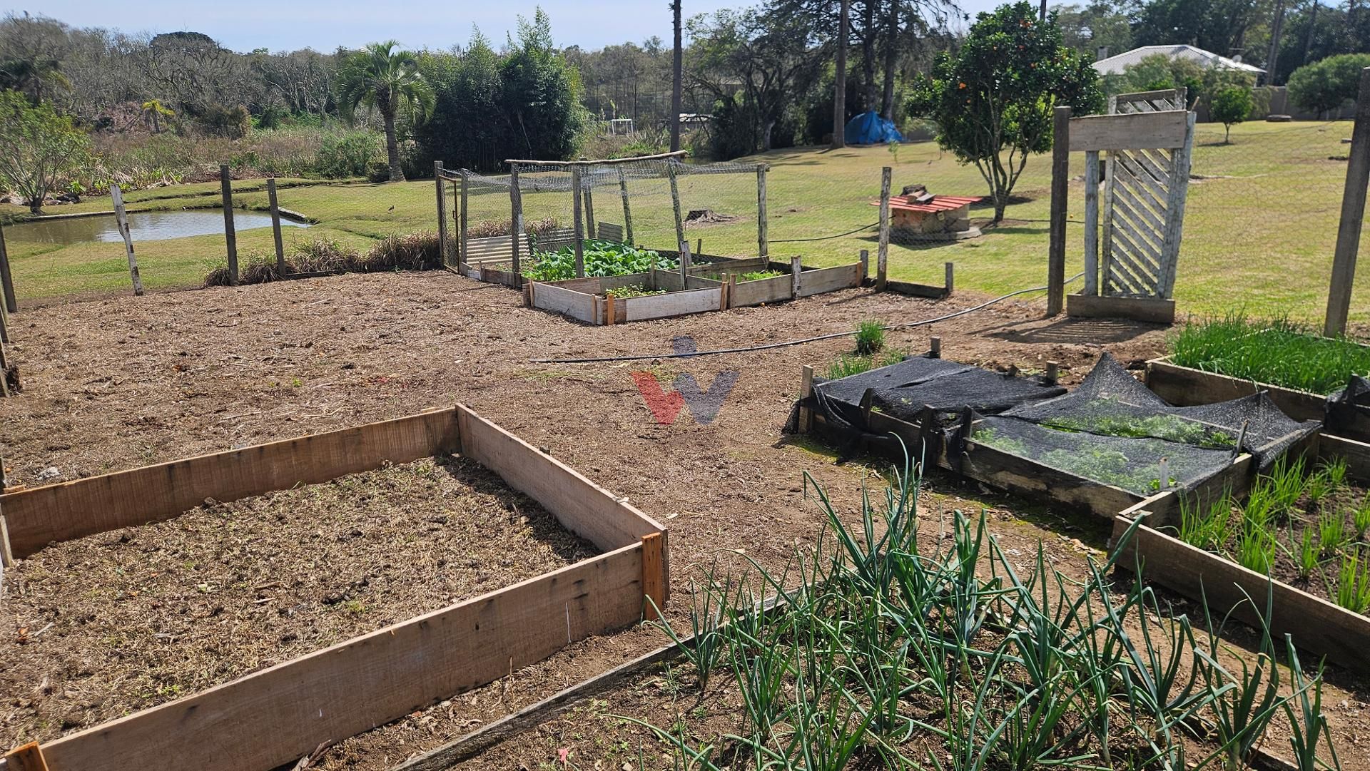 Pomar variado, horta produtiva e área de plantio com mandioca