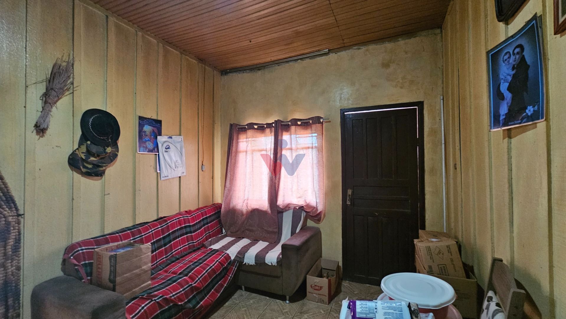 Casa 3: em madeira, 02 quartos, sala, cozinha, banheiro, área de serviço e garagem
