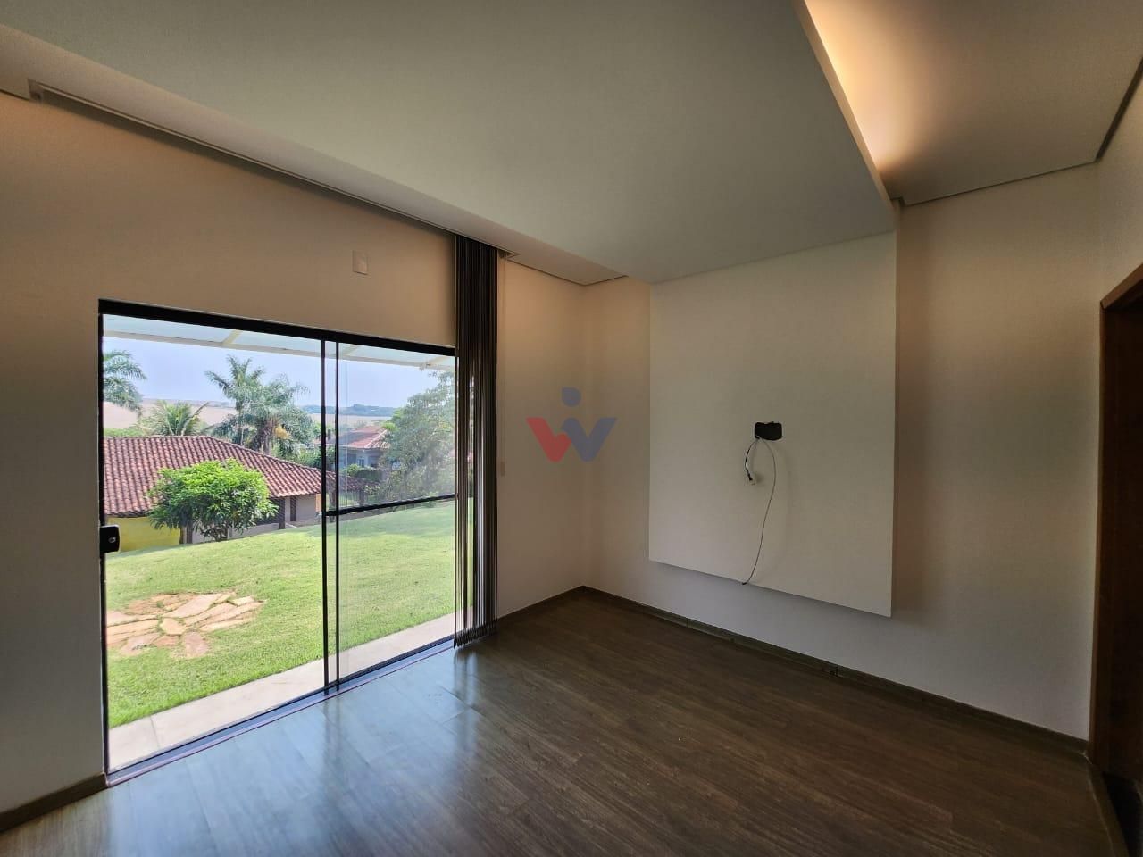 No pavimento superior, encontra-se uma confortável sala íntima, ideal para momentos de descanso ou convivência familiar, com acesso à sacada e vista permanente para o campo e para a área de lazer do condomínio, proporcionando um ambiente tranquilo e privilegiado.